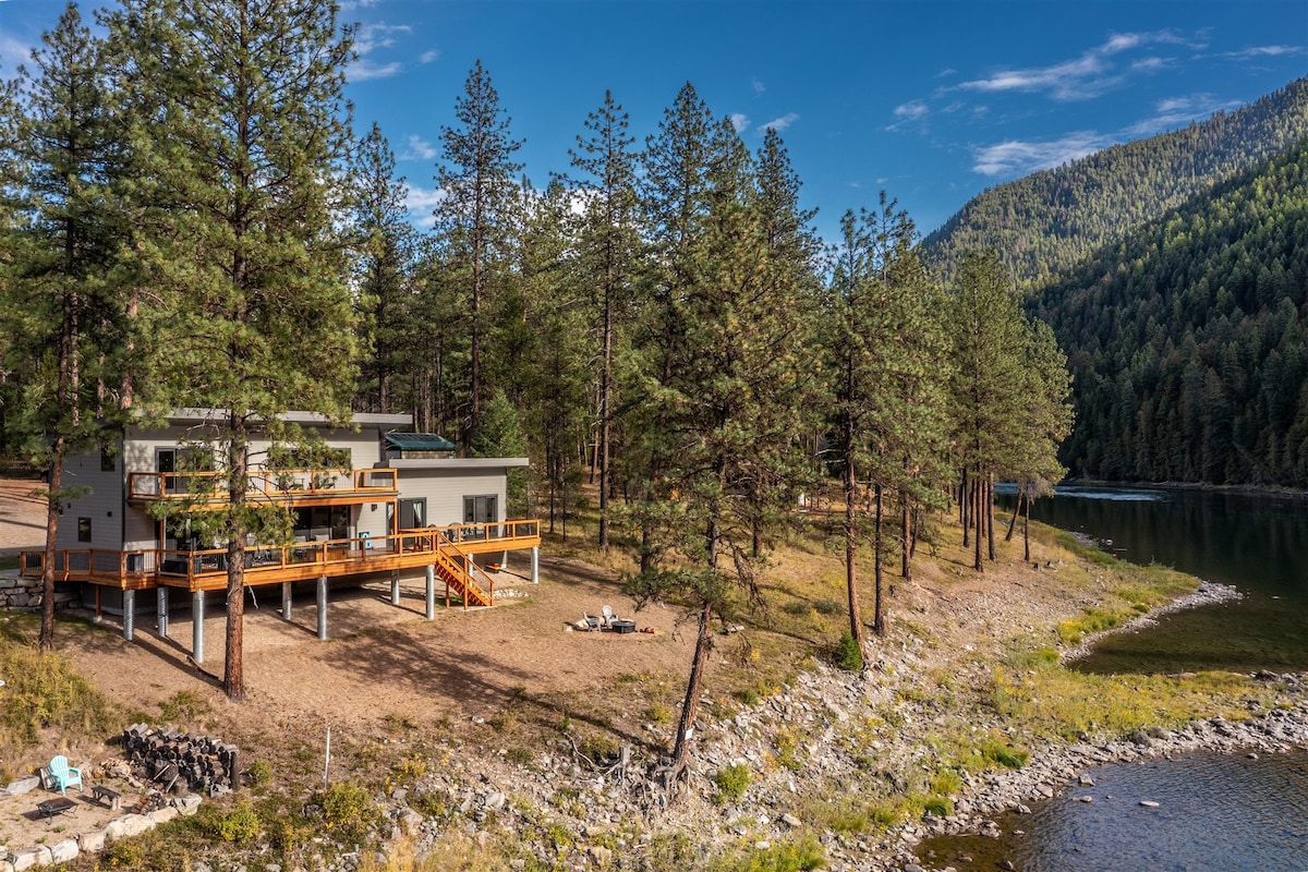 Sit back and relax in this secluded, nature-filled hideaway. Work or play as the sounds of the river flowing and the birds singing rejuvenates your mind and spirit! Located across a private bridge, this 7 acre island property borders both the Whitefish and Stillwater Rivers - yet only 5 minutes from downtown Kalispell! 11 minutes to/from Kalispell airport, 23 miles to Whitefish Mountain ski resort and 36 minutes to Glacier National Park. Beautiful, brand new build, completed July 2023.