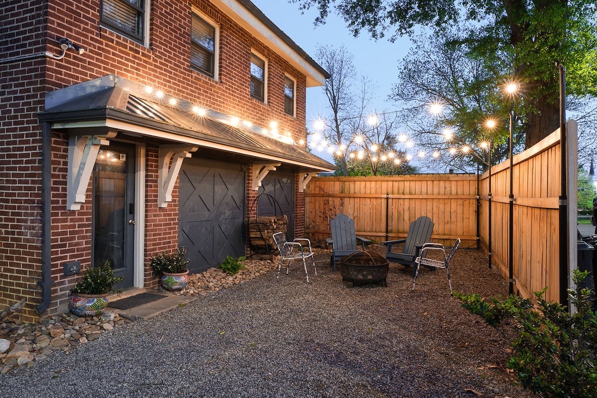 The Carriage House and city of Morganton have power and are ready visitors. This guest house sits behind a historic home in downtown Morganton. The 1920s structure has restored original finishes : a claw foot tub, vintage bathroom sink, and farm house sink in the kitchen. Downstairs features original wood bead board ceilings. Upstairs the ceiling was removed to expose the roof and beams. Two fireplaces keep it cozy - you'll have a lovely place relax and listen to the rain on the metal roof.