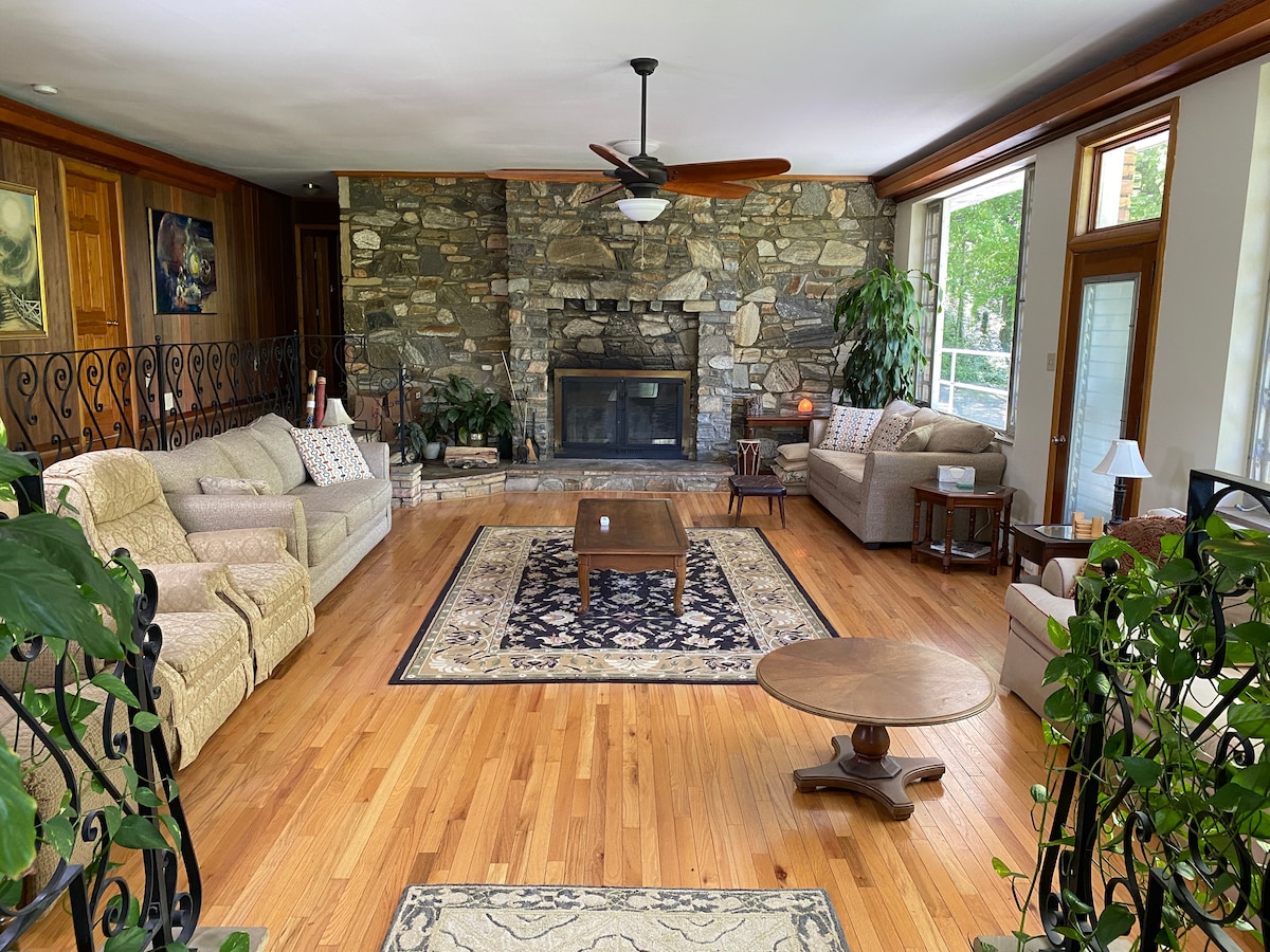 Oracle Guest House is a custom, 4-bedroom lodge with a breathtaking view of the New River in Independence, VA. The house features a fully stocked country kitchen, large family room, laundry, WIFI, TV, and wrap-around deck with grill. Our 22-acre campus extends to the New River, allowing for onsite fishing, swimming, and kayaking. The Master King Suite has a jacuzzi and is located on the main floor with private access to the deck.