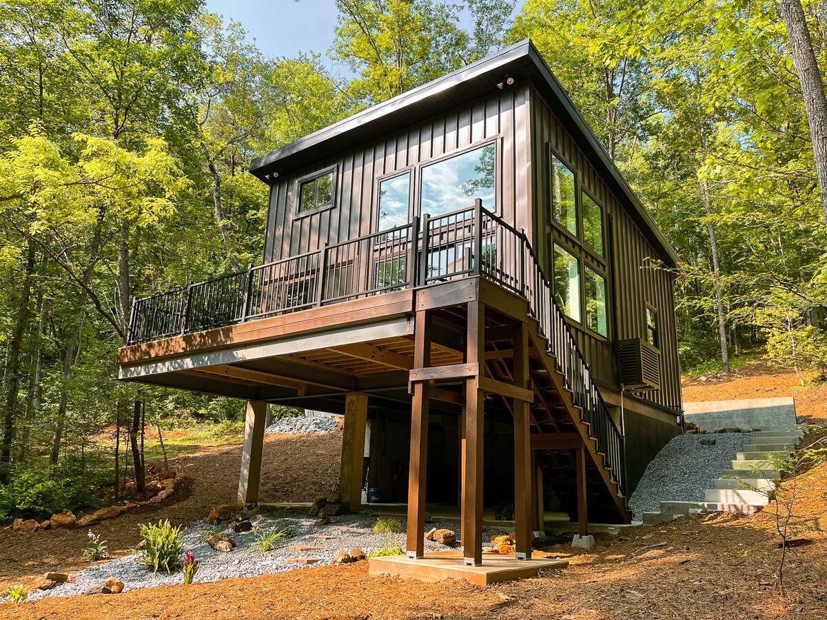 I designed and built this custom shipping container getaway for you to have a unique place to stay, relax and enjoy yourself in the foothills of the North Georgia mountains. This is as close to nature as you can get (without having to go into it, lol). Nestled in a secluded spot minutes away from wineries, tons of outdoor activities and downtown Dahlonega, you'll have something to do for your entire stay! So come relax by the fire pit, in the hot tub, or somewhere on the 1000+ sq. ft. decks.
