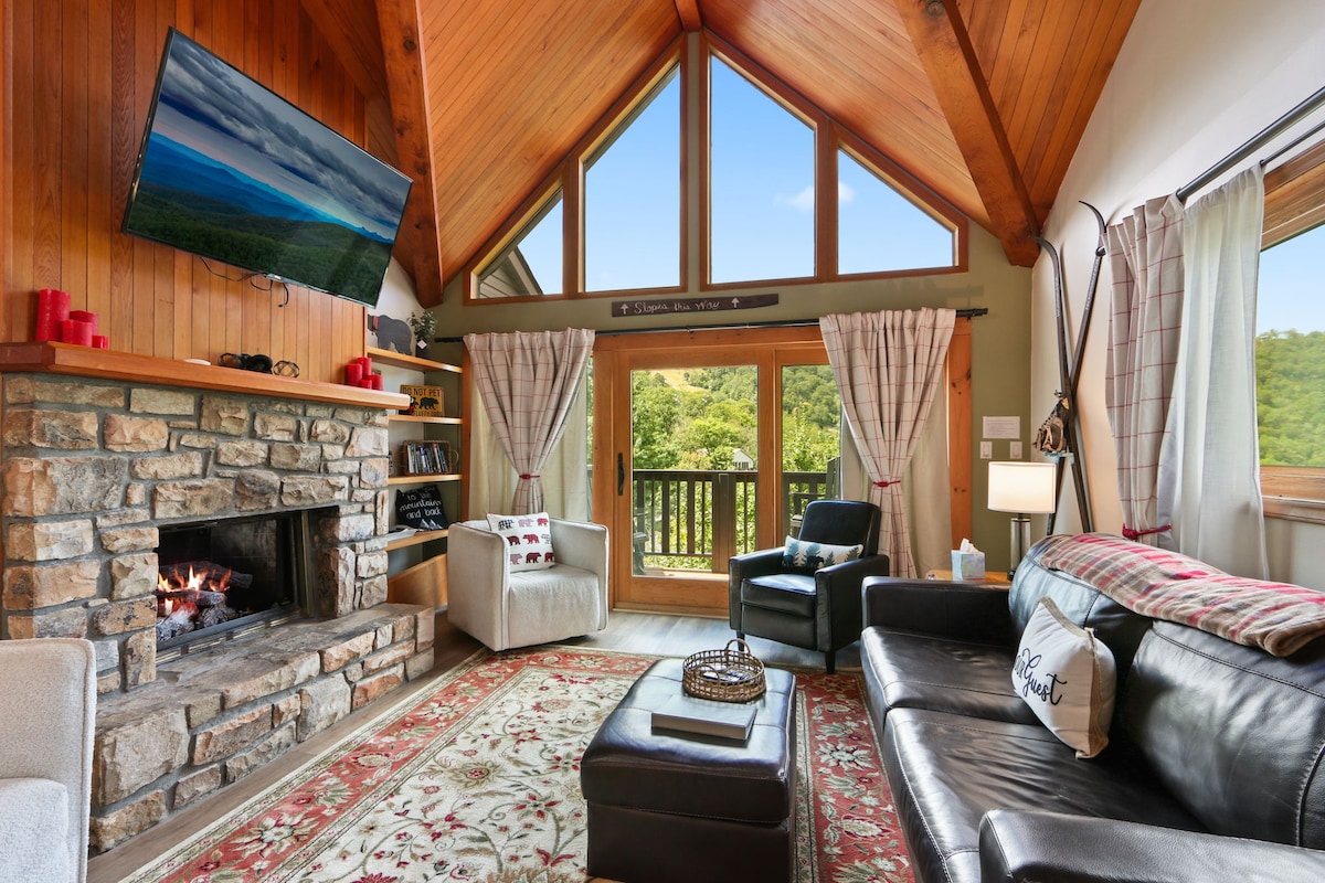 Discover the #1 rated cabin in Asheville! Your perfect NC mountain retreat cabin - complete with all the amenities for a dreamy vacation! Two sister cabins next door. All 3 cabins combined sleep 33. Inquire for details! #1 Rated Cabin in Asheville~Views~HotTub~Game Room -30 Mins to Asheville -Ski Slopes right out front door to Hatley Pointe Mountain Resort -Close to Hiking -Hot Tub and Bar on Bottom Deck -2 Fireplaces -Game room with Air Hockey - Foosball - Arcade Table w/ over 400 games