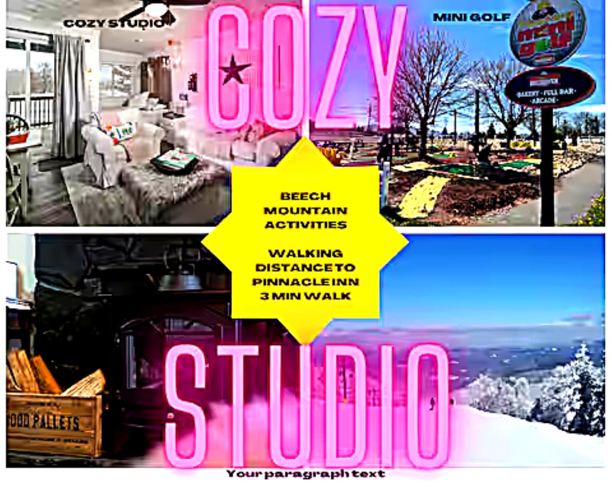 🏔️ Cozy first-floor studio in Beech Mountain, NC 🔥 Electric + wood-burning fireplace for cozy nights 🛏️ Comfy queen bed + relaxing seating 📶 Fast free Wi-Fi & Smart TV w/ cable + HBO ☕ Stocked coffee & tea bar 🏊 Indoor pool, hot tub, sauna & game room 🚶 Walk to FREE sledding hill & dining 🎿 Minutes to ski resort + seasonal shuttle 🥾🚴 Close to hiking, biking, festivals & concerts Perfect for couples, solo travelers & mountain getaways—book your Beech Mountain escape today!