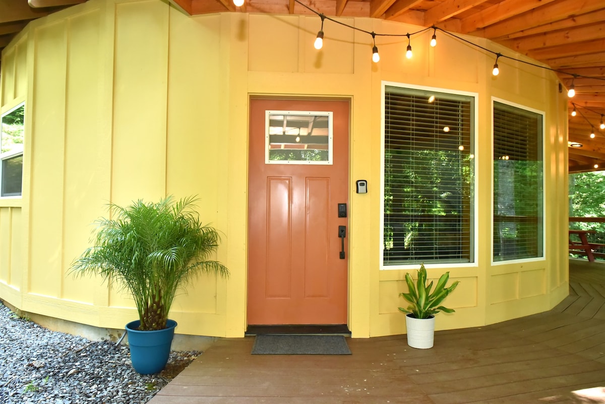 This adorable round house sits on the West side of Asheville in a quiet neighborhood just on the outskirts of town. Convenient to I40, just 17 min from the airport, 13 min (6 miles) to downtown, 15 min to Biltmore, 15 min to UNCA, 17 min to the arboretum and 10 min to happening Haywood Rd. Clean, comfortable and stylishly funky with all new beds and mattresses, wifi, roku TV, a lovely porch for sitting and even small fire pit in back. There is also enough parking for 3 or 4 cars off street.
