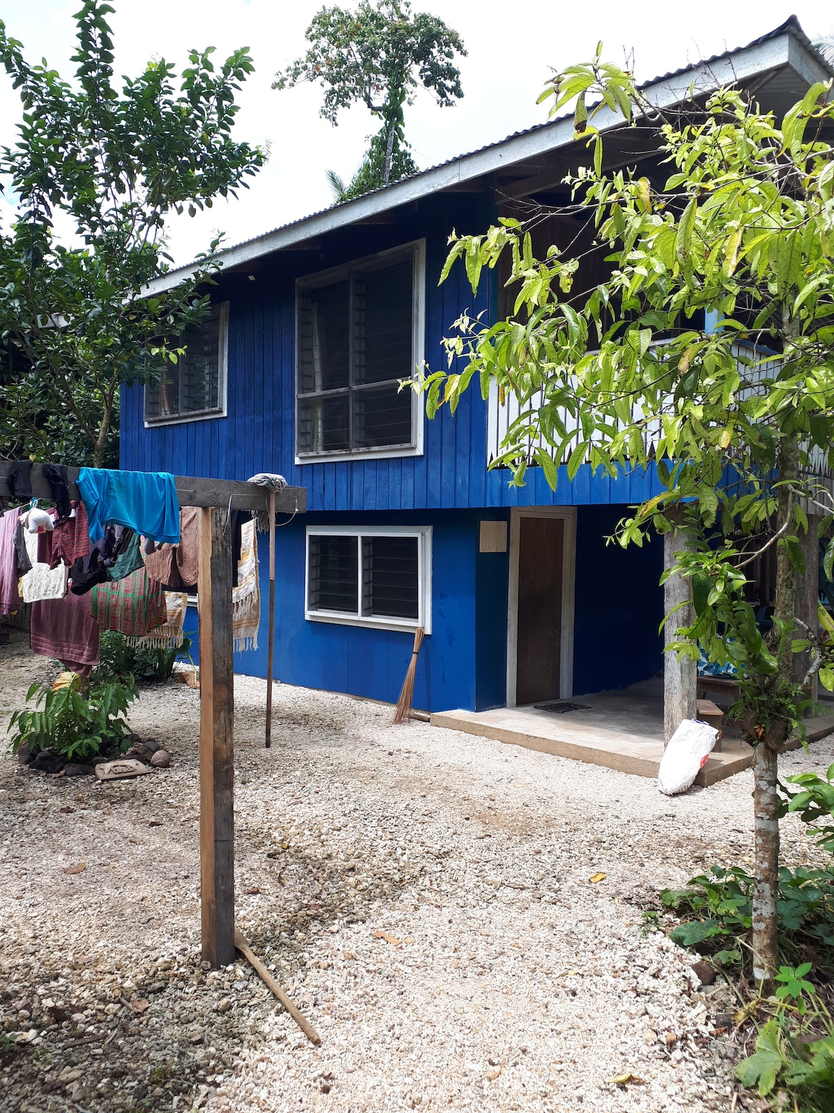 Purpose built for our family, easily sleeps one family of 5+ or two couples plus one other. Magnificent sea views due west to Simbo and Ranonga islands. Its unique design enables comfortable living in the hot humid tropics without air conditioning. All normal services are available. The house is 20 mins walk (<3kms) from the centre of Gizo town where trips to nearby islands and diving sites can be arranged. The Gizo market has ample supplies of fresh local vegetables and amazing fish. Starlink.
