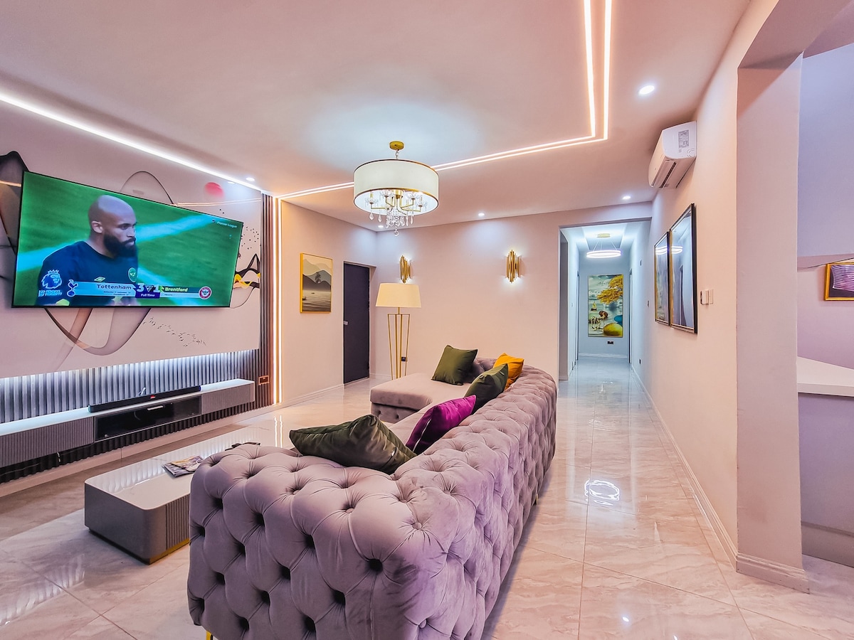 This modern, full-service, family-friendly 2-bedroom apartment with 2.5 bathrooms offers a private rooftop swimming pool and an exclusive rooftop bar and grill for families or guests. Located in the heart of Takoradi’s Anaji area, the property features a fully-equipped kitchen and dining area, complete with an island perfect for cooking, working or entertaining. The living room is outfitted with a 75" Smart TV, Netflix, Wi-Fi, executive working desk, and a soundbar for your entertainment.