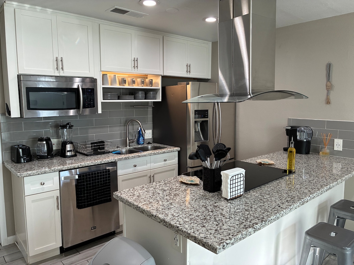 Relax in our fully furnished 2-BR guest house with a queen-sized bed and a living room with a sofa bed and leather recliner. Enjoy the privacy of a private bathroom with a bathtub & shower. Convenient amenities include a private entry, laundry room, garage parking, and a large patio with a BBQ grill. All utilities, 2 flat-screen TVs and internet, are included for a comfortable and worry-free stay. ✔ Fully Equipped Kitchen ✔ Patio ✔ Close to Downtown ✔ Private Parking Learn more below