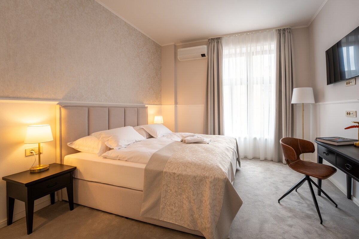 Grand Central Boutique Hotel in Ljutomer, Slovenia, offers a blend of historic charm and modern comfort with its seven elegantly designed rooms. Guests enjoy personalized service and exceptional dining at the on-site cafe and Italian restaurant. The intimate, cozy atmosphere makes it a perfect retreat, while its central location provides easy access to local attractions. Committed to sustainability, the hotel caters to all travelers, promising a memorable and delightful stay.