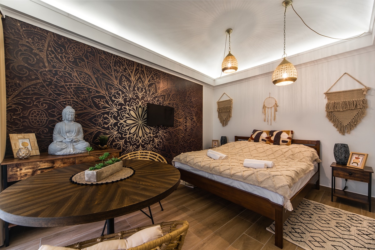 This luxury apartment in the heart of Győr is located in a fully renovated building consisting of 15 rental units, each of them one-of-a-kind with its own unique design. This one was inspired by the tropics, which is reflected in the materials, colors and patterns used. Whether you're coming to explore the city or just passing through, this place near the main square and the Danube is the perfect choice and has all the amenities you might need for a short stay.