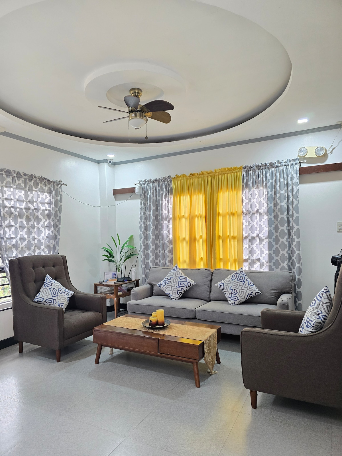 Peaceful, gated home in Iloilo City's Arevalo district. Built 2018, this modern house comfortably sleeps 7 (bed spaces), accommodating up to 12-15 guests with floor mattresses. (Note: 2 bathrooms available). Pricing:** ₱1,800/night for 3 guests. Additional guests: ₱350/person/night. .