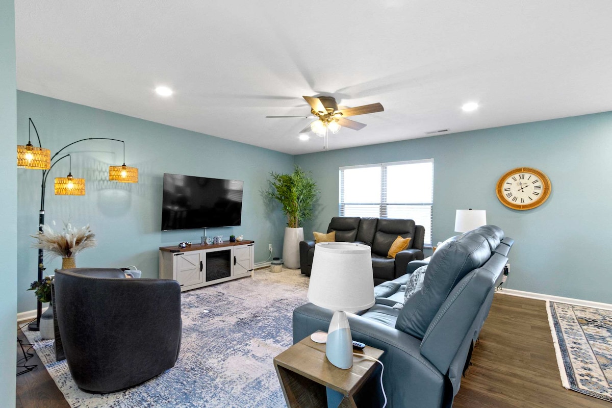 Westfield gem! Just 7 quick minutes to Grand Park! Close to Downtown Indianapolis (32 mins), Ruoff Music Venue (27 mins) and all that the Indianapolis & surrounding areas have to offer. Spacious 4-bed, 2.5-bath home sleeps 11 guests comfortably. Includes beautiful fully stocked kitchen, 2-car garage, TVs, Movie Theatre, games, fenced backyard, and patio for your enjoyment! Stroll on the Monon Trail. Enjoy family-friendly parks. So many restaurants to choose from, too! Your seamless stay awaits!