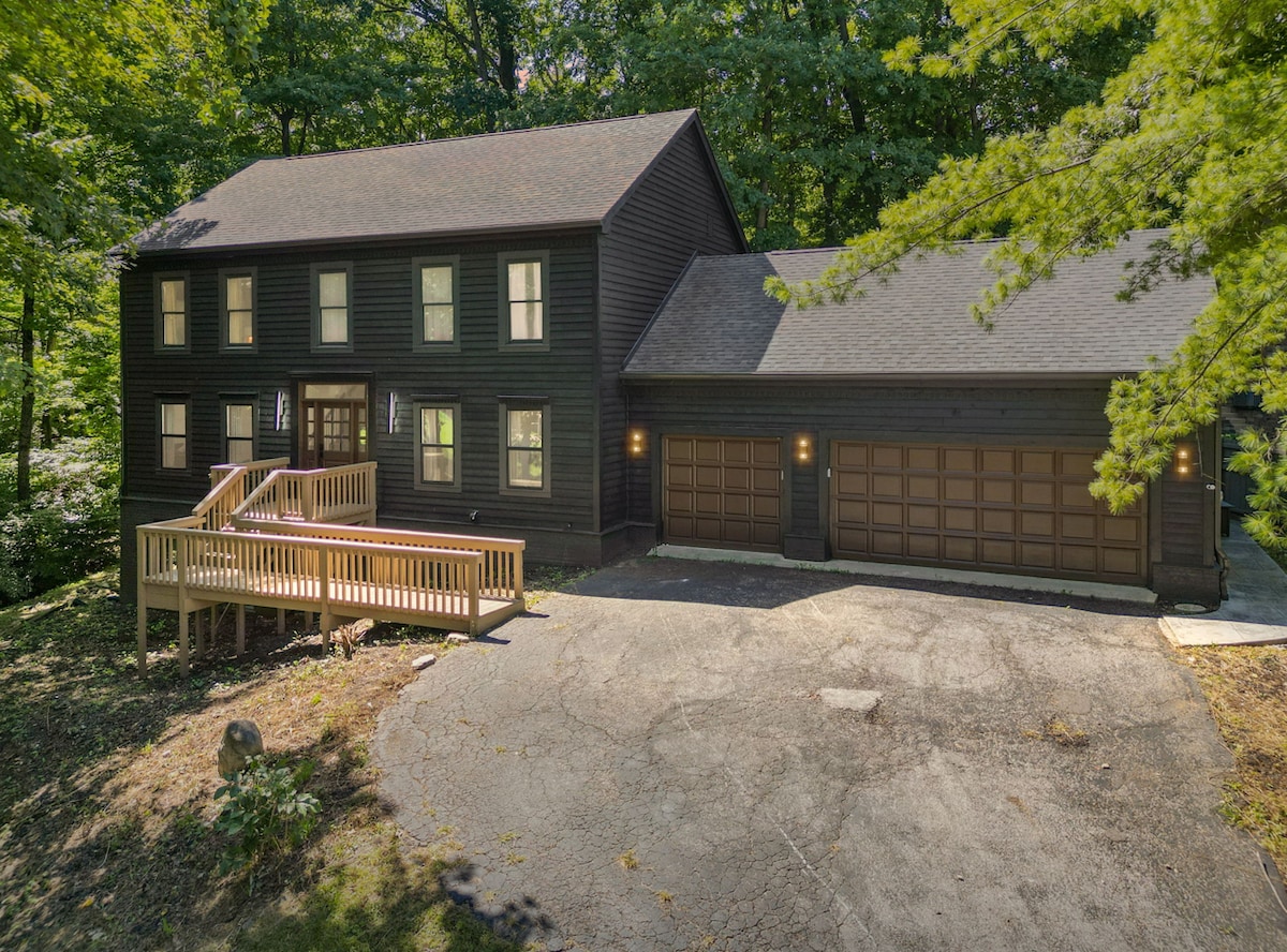 Discover Timberline at Geist: a 5 Bedroom, 3.5 Bathroom modern retreat for up to 15 guests near Geist Reservoir. Gather in the open living area with fireplace, cook in the sleek chef’s kitchen, or recharge in the private hot tub. With a gym, stylish patio with firepit, and serene wooded surroundings, this home is perfect for family reunions, group getaways, or work retreats. Just minutes from boating, dining, and downtown Indy, it’s your ultimate blend of comfort, fun, and convenience.