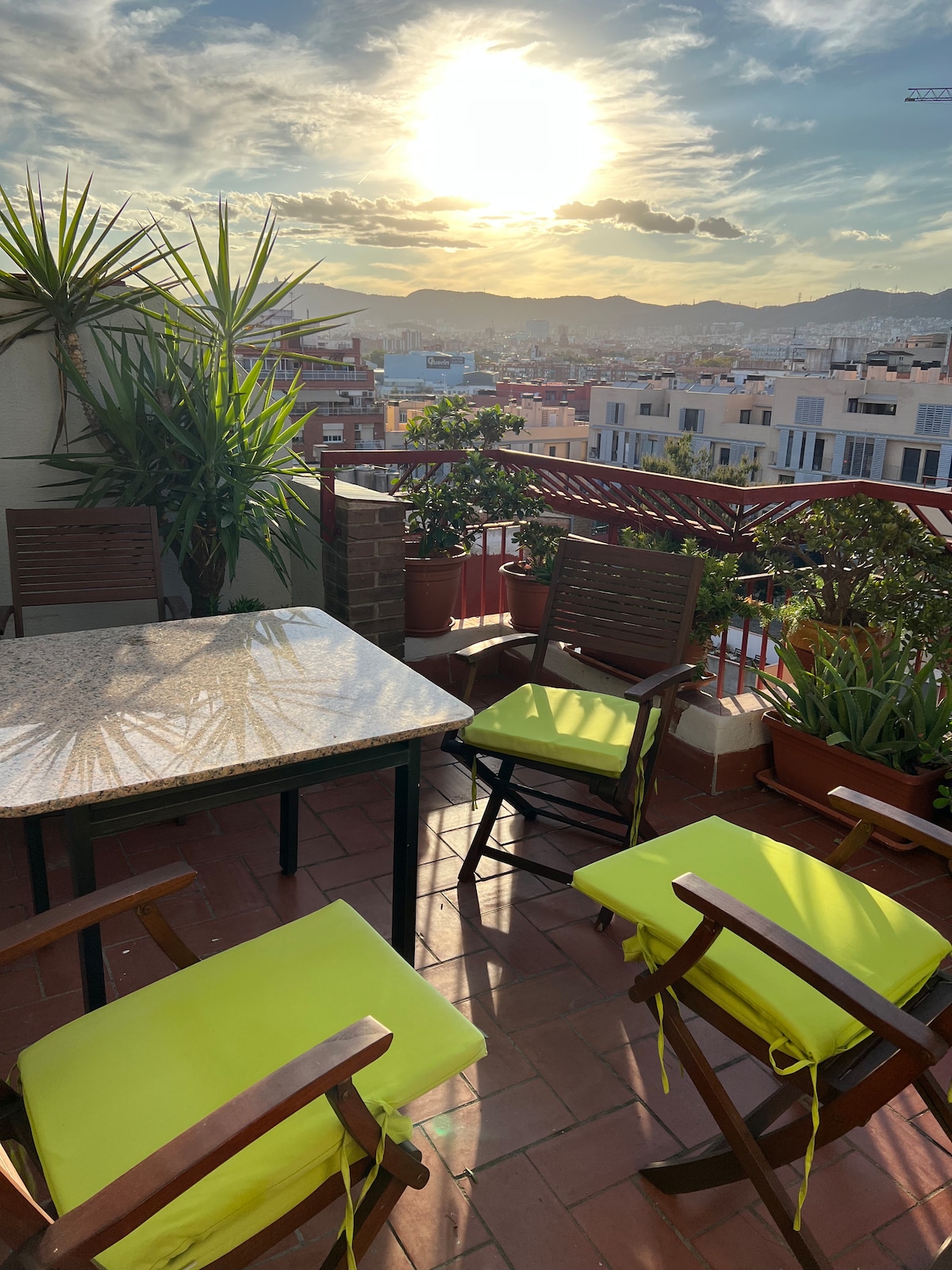 Bonito apartamento con terraza y balcón a 15min (metro) de Sagrada Familia, 20min del centro de Barcelona(Passeig de Gracia), 15min andando hasta la playa. Muy bien comunicado con Metro-Bus-Tranvia-Tren. Terraza 75m con muebles(sofá, sillones, mesas) y plantas para un descanso placentero. Apartamento muy luminoso limpio y confortable con todos los electrodomésticos necesarios. La zona es muy tranquila con cafeterías, bares y buenos restaurantes a buen precio. Parking municipal gratis muy cerca.