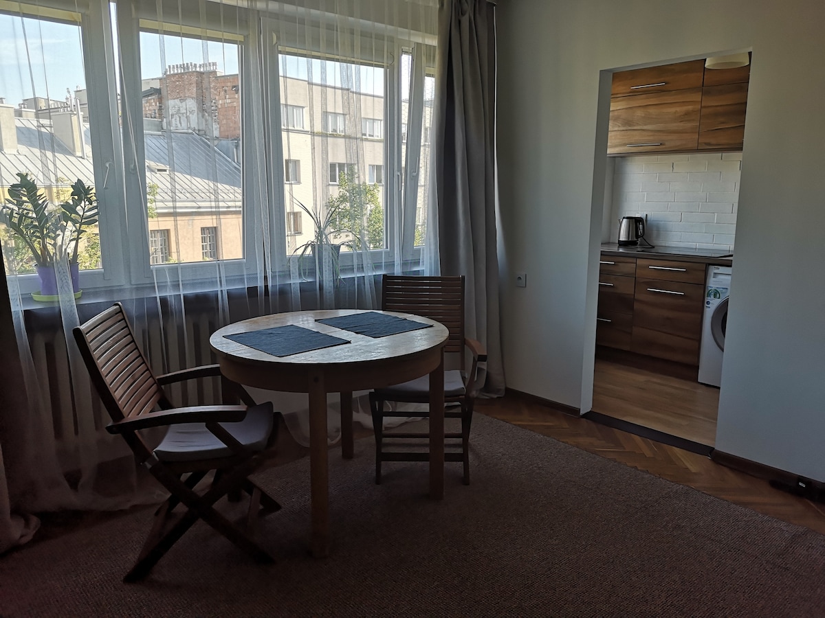 Przytulne mieszkanie 2-pokojowe na Starym Mokotowie idealne dla pary lub jednej osoby. Idealny nocleg dla osób, które przyjadą do Warszawy w celach biznesowych, lub chcą zwiedzić stolicę. Mieszkanie doskonale skomunikowane 1min pieszo (100m) od metra Wierzbno. W 8min dostaniesz się do Centrum, w 10min do biur na Służewiu. Mieszkanie na wysokim parterze w bloku 4-piętrowym. Cicha okolica, budynek odsunięty od ulicy. Mieszkanie w pełni urządzone i wyposażone. A dla relaksu dostep TV+Netflix