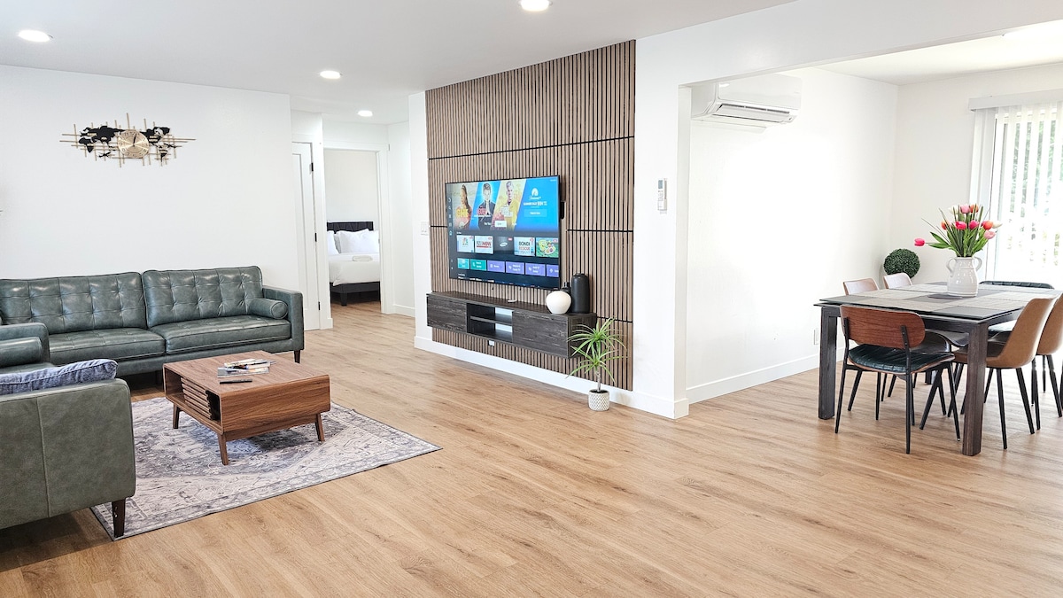 The open spaces and white fixtures of this home are elevated by soaring ten-foot ceilings, hardwood floors, chic photography, and cute potted plants. Head out to the private yard for a cookout and enjoy basking in the sun and fresh air, then kick back on the oversized sectional and enjoy the 4K smart TV (WIth Netflix). At the end of the day, rest and relax in peace and comfort. The hotel quality bedding, towels, and all surfaces have been meticulously cleaned to the highest standard prior to your arrival. ★The Guest House★ This home was built in 2017 and you'll feel like you're in a modern luxury condo with soaring ten foot ceilings, open floor plan, and fully stocked modern kitchen. You'll have total privacy and security, as the house is totally detached and situated at the opposed end of our property - It even has its own private yard! ★Two Bedrooms★ Both bedrooms are perfect for resting and recharging with hotel quality mattresses, bedding and linens, freshly cleaned before your arrival. You'll have plenty of room to unpack and make yourself at home with dressers and plenty of closet space! Both rooms have queen size beds! For groups needing more sleeping arrangements, you'll have an amazing sectional in the living room and access to a queen size Air Mattress and extra linens. ★The Kitchen★ If you like to enjoy home cooked meals while you're traveling you will LOVE staying here. The open concept kitchen has quartz counter tops, brand new appliances (including gas range), and is fully stocked with all the usual cooking equipment. Need something you don't see? Just ask and we'll bring it over if we have it! ★The Living Room★ You will have no problem relaxing and making yourself at home in the open concept living room. Kick back on the SUPER comfy over sized sectional and watch your favorite movie or show on the 60' 4K TV with cable, streaming Netflix, Amazon Prime, and of course high speed WiFi. When you've had enough screen time, you can dive into the stash of board games! ★Private Yard★ Just walk out the back of the unit and you'll be on your own private patio overlooking your own private yard! It's equipped with everything you need for a cookout! ★Bathroom and Laundry★ The modern bathroom is fully stocked with toiletries including shampoo, conditioner, body wash, and hair dryer! There is a washer and dryer with complimentary detergent for your convenience. The entire house is all yours! In addition, there is a private yard enclosed with fences for you to enjoy! The house shares a driveway with another unit, but there is a dedicated parking space and unlimited street parking because its a totally residential neighborhood! We are happy to help with anything you need, and we can stop by and help with any questions you have about the property! However, we're also happy to give you total privacy during your stay! The home is in a quiet and friendly residential neighborhood with a Safeway grocery store less than a mile away. Spend the day at the expansive retail district just down the hill, or hop on the Seatac light rail to easily reach downtown Seattle. For those needing access to the airport and Seatac convention centers, the home is conveniently situated less than a mile away! If you have access to a car, you'll love how easy it is go get around from this guest house! You can hop on I-5 or I-99 and get into Seattle or Tacoma in 15-20 minutes. If you don't want to deal with Seattle traffic or parking, you can park at the Tukwila light rail station and glide into Seattle in about 30 minutes! If you don't have a car, you'll also have plenty of options to get around! The Seatac lightrail station is just over a half mile away and is an easy walk. There is also a bus line (156) about a 3 block walk away that picks up every 15 minutes. Getting to and from the airport is incredibly easy (walkable, or a 5 minute taxi/ride share). Ride shares are constantly available within just a few minutes, and are a great way to get around! In addition to Seattle, there is a bustling shopping and dining district just down the hill called Southcenter. It has TONS of options for dining, movie theatres, shopping, IKEA, and one of the largest malls in the region. Southcenter is a 5-10 minute drive away! The house is situated in the back of our property and you access it by going around the main house on the west side (right of the main house). The dedicated parking spot is marked with a welcome sign and is on the right side of the driveway. There is a wide swinging gate that opens up directly to the front steps of your Airbnb!