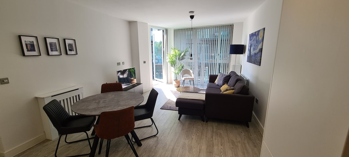 A bright, top-floor London apartment with a private balcony, open city views, and excellent transport connections across the city. This calm, spacious two-bedroom, two-bathroom home offers space to relax, work, and explore — without the noise and crowds of central tourist areas. Ideal for city breaks, events, and longer stays. Westfield Stratford City — one of Europe’s largest shopping centres with 70+ restaurants and cinema, is right on the doorstep.