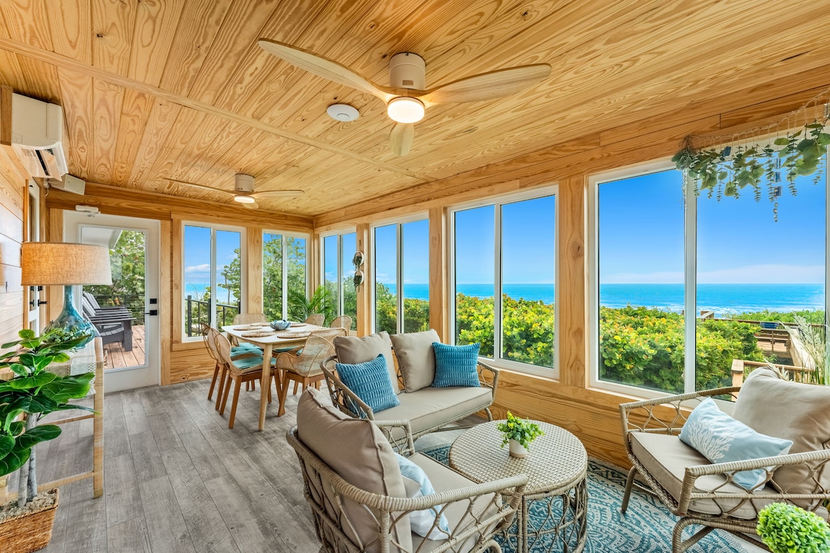 Wake up to the sounds of the waves in this ocean front oasis. Home offers 3 levels, each floor offering magnificent views of the ocean and beautiful sunrises. Lg sundeck on 2nd floor perfect for sunbathing. Home has been tastefully decorated and remodeled with all new furniture, fixtures, and much more. Home offers private beach access. Close to Starbucks, many restaurants, ice cream shop and only a 7min drive to Downtown Melbourne. There’s a 2nd unit attached to this property that also rents.