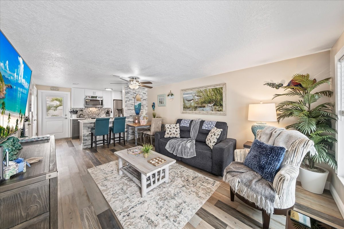 The Laguna Villa at Cali Villas" is a luxury Villa offering everything you need to have your own private escape. The large open space layout is the perfect retreat featuring a 75" flat screen in the family room, two "Dreamsleep" bedrooms, a full kitchen, dinette and huge walk-in shower in the bathroom. Ultra-fast 1 Gb download speeds, Alexa smart home devices and installed streaming services like Netflix, Hulu, Disney +, Prime & ESPN Plus. **NEW 30' entertaining pool with 5' Beach area for kids