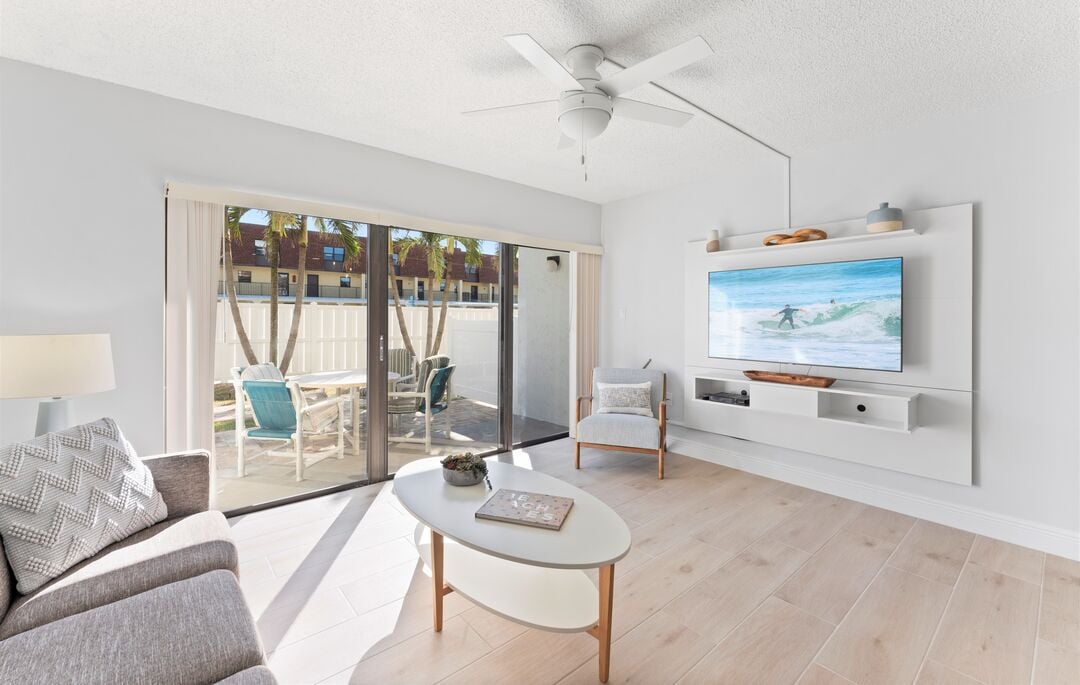 Enjoy our recently updated condo, Vitamin Sea, with private beach access and on-site heated pool. Centrally located to Ron Jon’s Surf shop, Cocoa Beach Pier, CB Downtown & Kennedy Space Center. Perfect for all types of getaways. This space offers a fully equipped kitchen with stainless steel appliances and a washer/dryer for an effortless stay. We are looking forward to hosting you and we invite your fury friend (1 pet up to 20 lbs allowed)