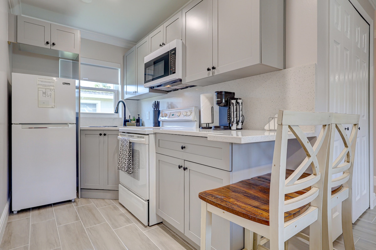 Escape to our updated Florida-themed studio, now featuring a private outdoor shower and tub —perfect for a good soak after hours of travel! Full kitchen, new furnishings and local Florida artwork. Enjoy rocket launches, beautiful sunsets by the river (1 block away), and quick access to Cocoa Beach, Cocoa Village, and Kennedy Space Center. Just 15 minutes from Port Canaveral if you’re in need of a landing pad before or after your cruise. Relax, recharge, and treat yourself to peaceful comfort!