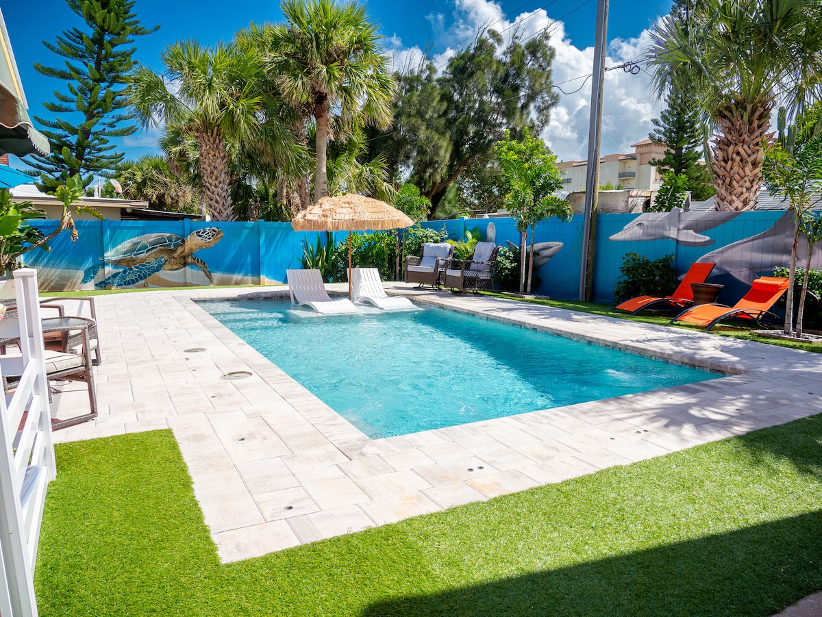 Welcome to your own private retreat! Paradise! Located directly across the street from famous Cocoa Beach on a very quiet street. This updated house is newly equipped with a beautiful pool and spillover spa surrounded by a tropical landscape. Everything from luxurious bath towels and linens to a Weber grill. Large smart TVs throughout including a large second living room with sliding doors out to the pool deck. Within walking distance to the Cocoa Beach pier and popular restaurants.