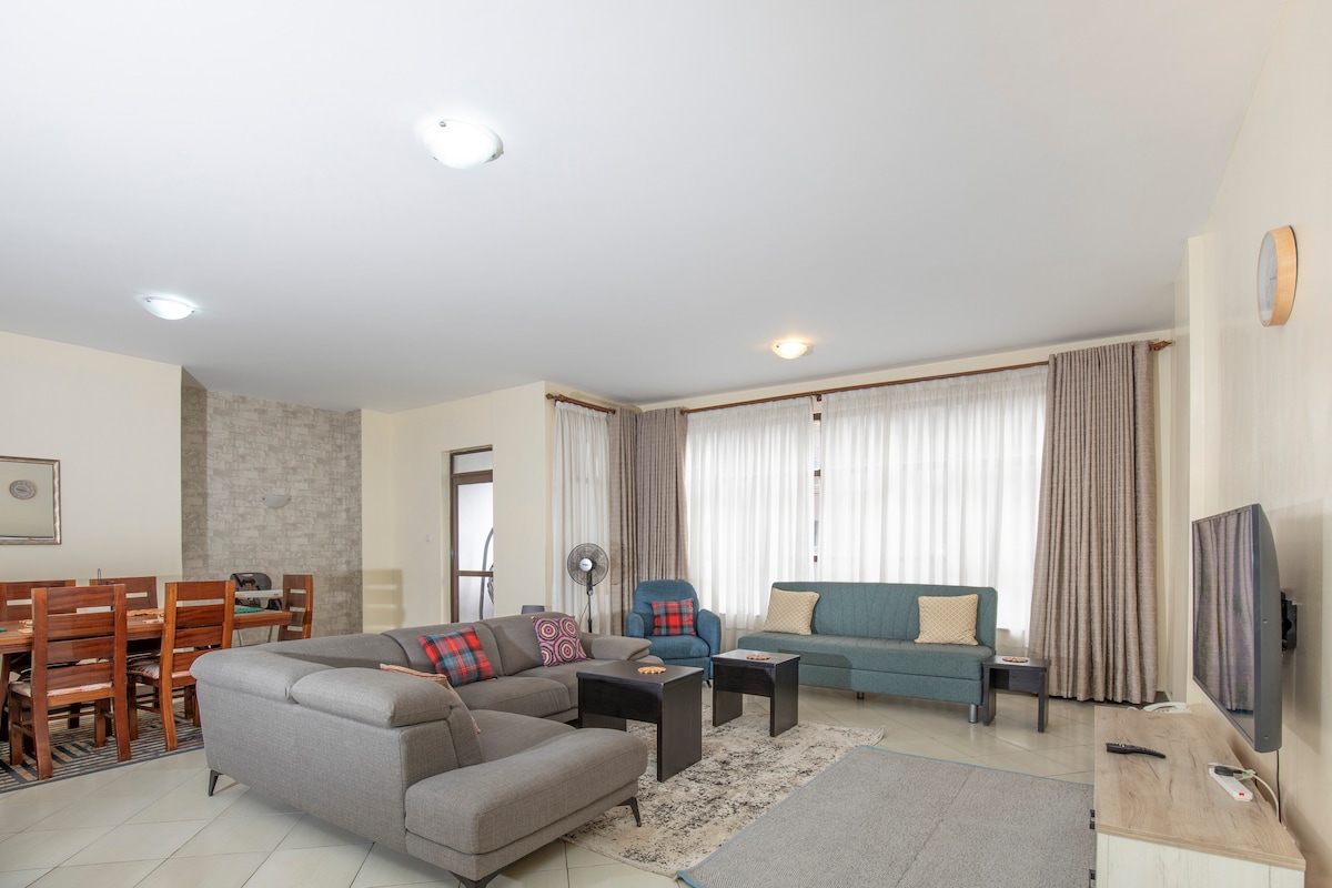 Experience comfortable living in this spacious two-bedroom apartment, located in a secure neighborhood in Westlands, within walking distance of malls and restaurants. Whether you are a couple, a family, or a business traveler, this home provides all the essentials. Enjoy free Wi-Fi, a smart TV (Netflix access via your own account), a fully equipped kitchen, and a dedicated study desk and dining table. Additional amenities include a washing machine, drier and complimentary on-site parking.