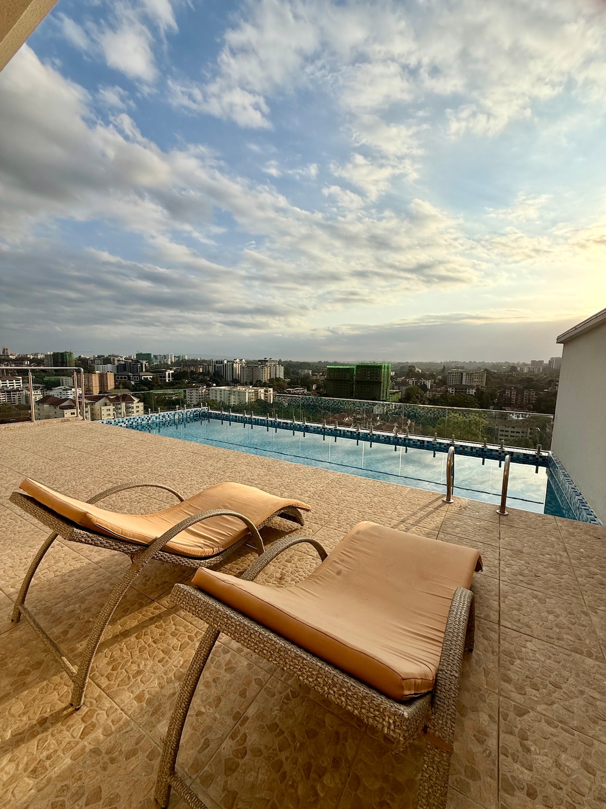 Wake up on the 14th floor to sweeping views of Nairobi and enjoy a modern, centrally located stay steps away from the best of Westlands. Restaurants, coffee shops, offices, and shopping are all within easy reach. Whether you’re here for business or leisure, you’ll love the fast WiFi, and easy access to the city. Stay productive at your desk, then head upstairs to the rooftop gym for a workout with stunning skyline views. Unwind with a refreshing dip in the pool or relax and take in the sunset.
