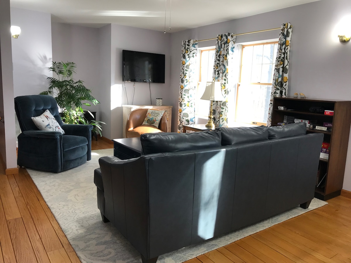 Completely renovated home on a quiet country road. New kitchen, bathroom, and deck. Private backyard with deck, grill, outside table and gas fire pit. The house is easily accessible with a flat driveway and one step up from the sidewalk. One king and 2 XL twin beds with all bedding washed after each guest. Bedrooms have room darkening shades. 300 Mbps wifi and a smart TV in the living room. Check out the Airbnb next door (Maple Glen) if you are traveling with a larger group.