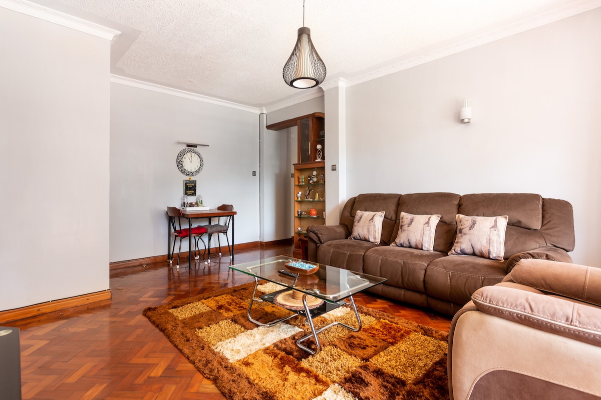 Located on Ngong Road about 800 meters from the Pentecostal Church and Mbagathi way/Ngong road roundabout. 5 minutes from Yaya Centre and Junction Mall. It's 3 minutes from Nairobi Hospital and Royal Nairobi Golf Club. Has beautiful balcony views. 2 Lifts, high speed internet, IPTV with live sports, Netflix and news. Baby Crib and high baby chair, washer and drier machines. Free gym and pool. Free cleaning 4th/depart day. Smart TV main bedroom. 4 WCs