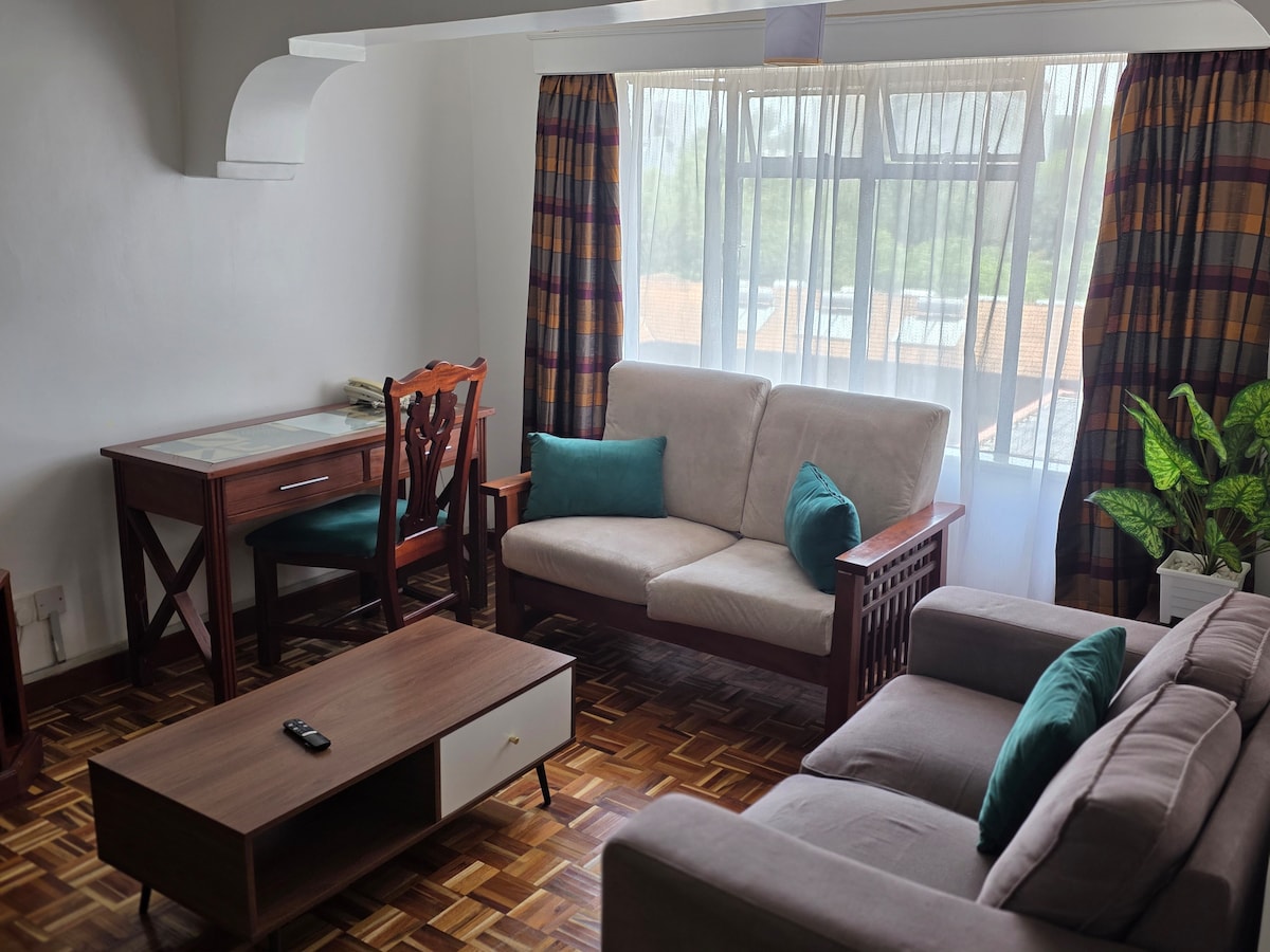 Kick back and relax in this calm, stylish one bedroom fully furnished apartment with a pool at the hear of Nairobi Westlands lantana road with a restaurant onsite