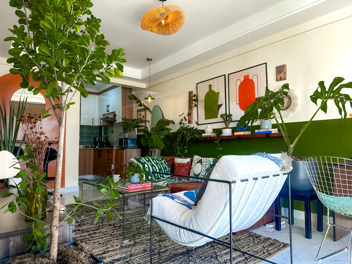 Experience a 12th floor artistic haven, a newly built unique Bohemian Home in the center of Kilimani. You’ll be just a walking distance away from Yaya shopping center, food spots & many other places worth checking out. You will luxuriate in a comfort cozy king bed, with intentionally curated furnishings surrounded with artworks,Art books and natural plants. You will also enjoy your private balcony access, fast wifi, work space, fully equipped kitchen, free Netflix, gym, and more . Book today!