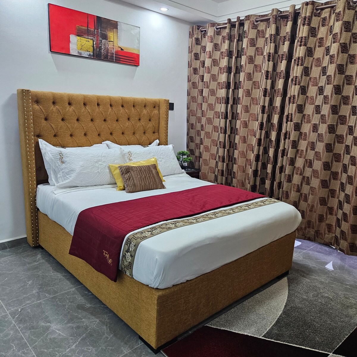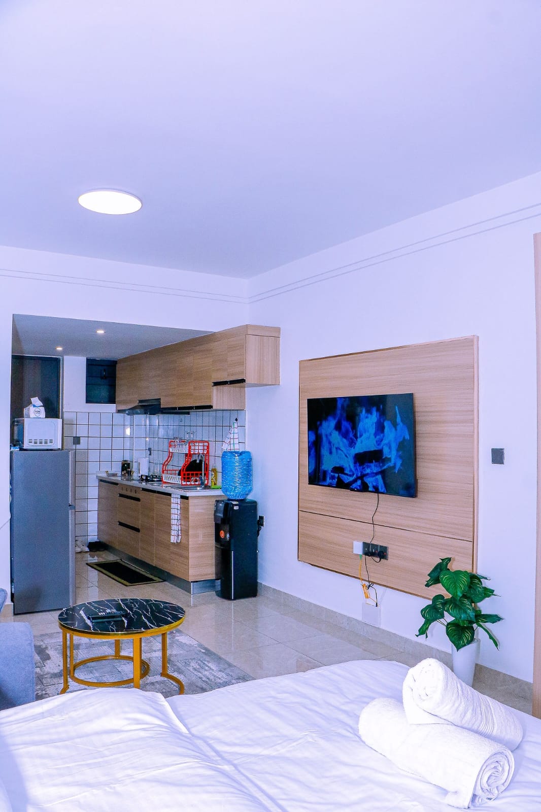 Welcome to our stylish 48m² studio—a premium Airbnb retreat where modern luxury meets comfort. Enjoy a plush queen bed, vivid sunrise/sunset views through expansive windows, and a flat-screen TV with top streaming apps. The gourmet kitchenette features a premium coffee maker and full cutlery. Building perks include a restaurant, coffee shop, gym, kids’ play and study areas, lounge, football pitch, elevator, and 24/7 security. Experience unmatched comfort and style. Book now for unending pleasure