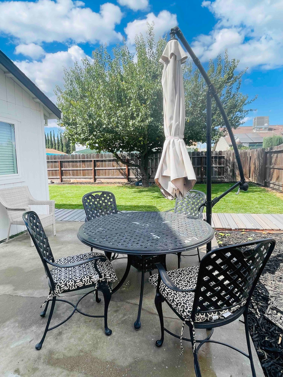 This cheerful and sunny home is located in a quiet and safe older neighborhood close to downtown and conveniently not too far from Hwy 99. This home is the perfect cozy place to rest and relax. Our little area of Modesto is unique in that we have a wonderful walking and biking trail only a block away. You can walk to our small neighborhood shopping area that has a grocery store with a Starbucks, a very popular frozen yogurt shop, restaurants, an independent bookstore and cute shops.