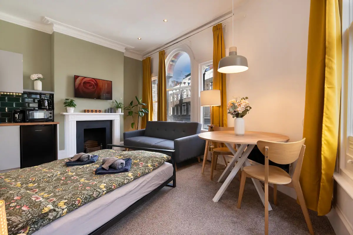 Enjoy historic charm and modern elegance in this newly renovated studio apartment, housed in a building with 250 years of history. Sound proofing ensures a calm stay, while your own full kitchen and private luxury bathroom allow you to unwind and relax. Our location is unbeatable. Tucked away on a quiet street by Leicester Square, you're minutes from top areas like The West End and Soho, with excellent transport links for further trips. Make us your base and spend more time enjoying London.