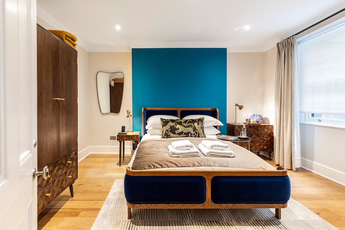 Directly opposite Buckingham Palace, in the heart of central London. A luxury one-bedroom apartment, in a historic 19th-century Grade II Listed townhouse. Ultra-prime St. James's Park location, 10 min walk from attractions, e.g. Parliament, Big Ben, Westminster Abbey, Belgravia & Mayfair. A quiet escape. Meticulously appointed, fully equipped kitchen, luxury interiors & 24/7 concierge. Great for Kids, 1 King Bedroom & 1 double sofa bed (in lounge or bedroom, your choosing).
