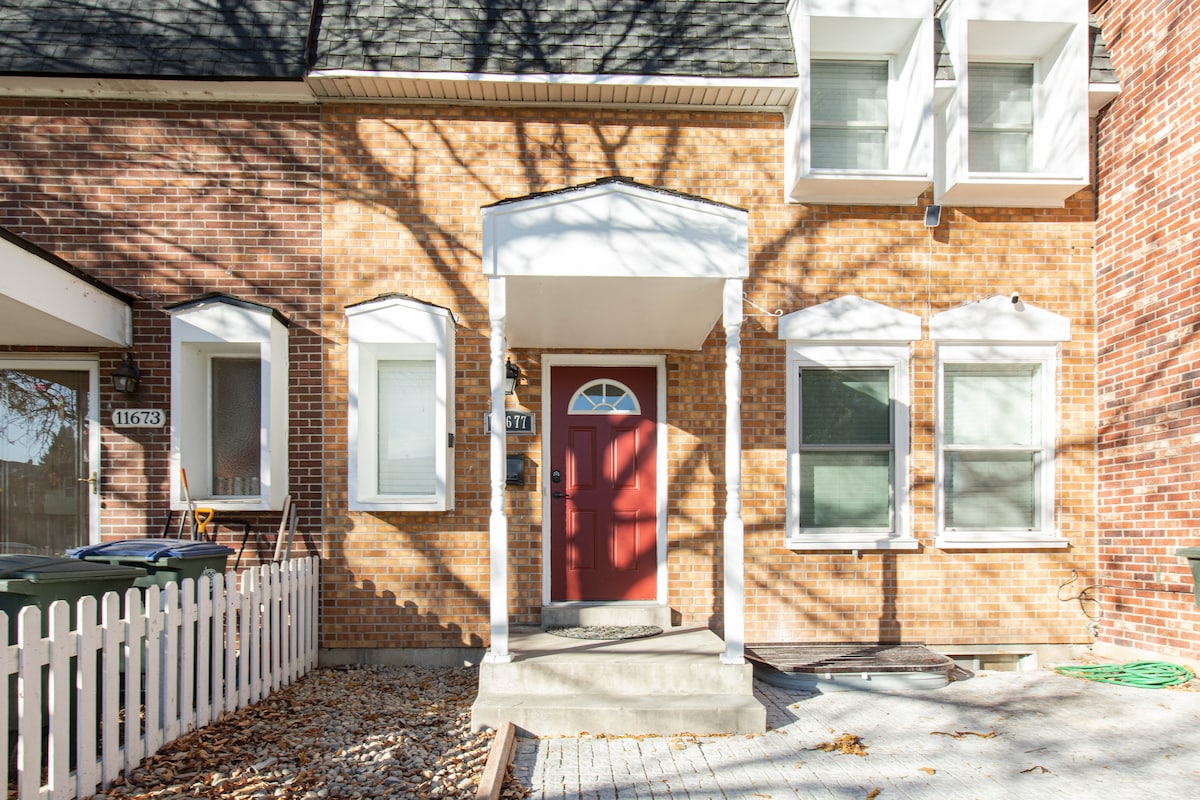 配备洗衣机和烘干机的联排别墅