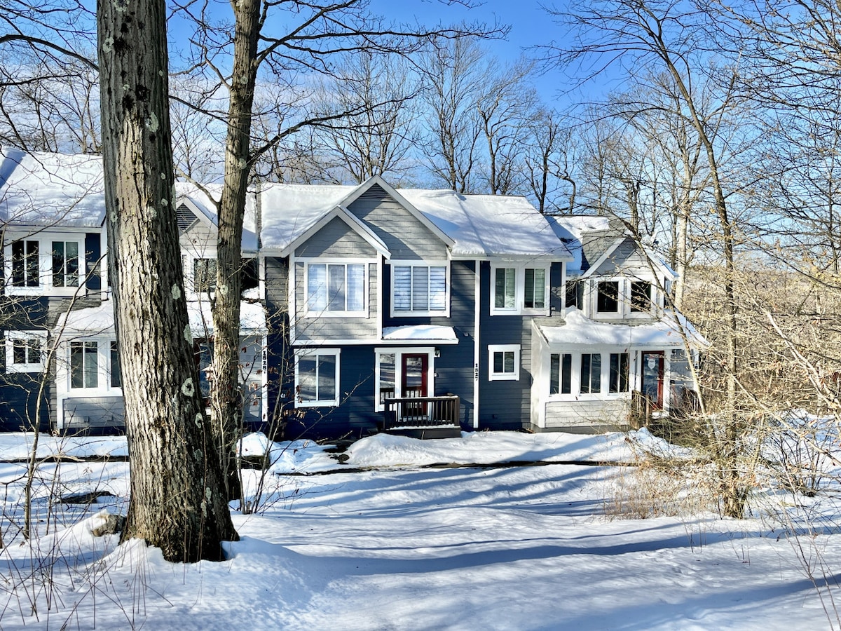 Mountaintop Hideaway is a family favorite retreat for those who want a taste of what the mountain has to offer. Conveniently located, steps from the shuttle stop to the slopes, 2 min walk to swimming pool, playground, bocce, basketball, tennis and pickleball courts or play a round at the golf course! After a long day of mountain fun, cozy up near the fire to relax or enjoy the deck views overlooking the pond. Get ready for a mountain adventure at our all season getaway at Hidden Valley Resort!
