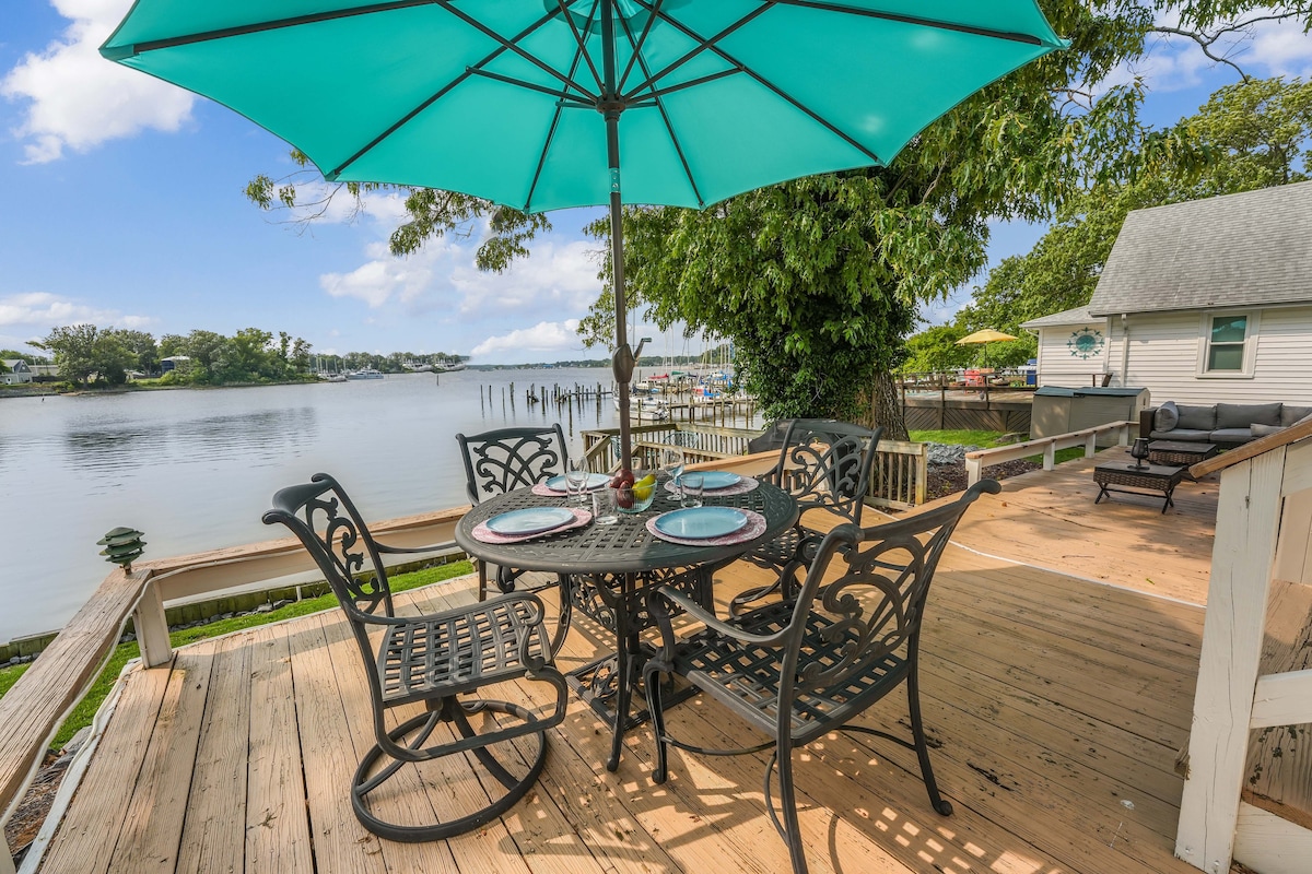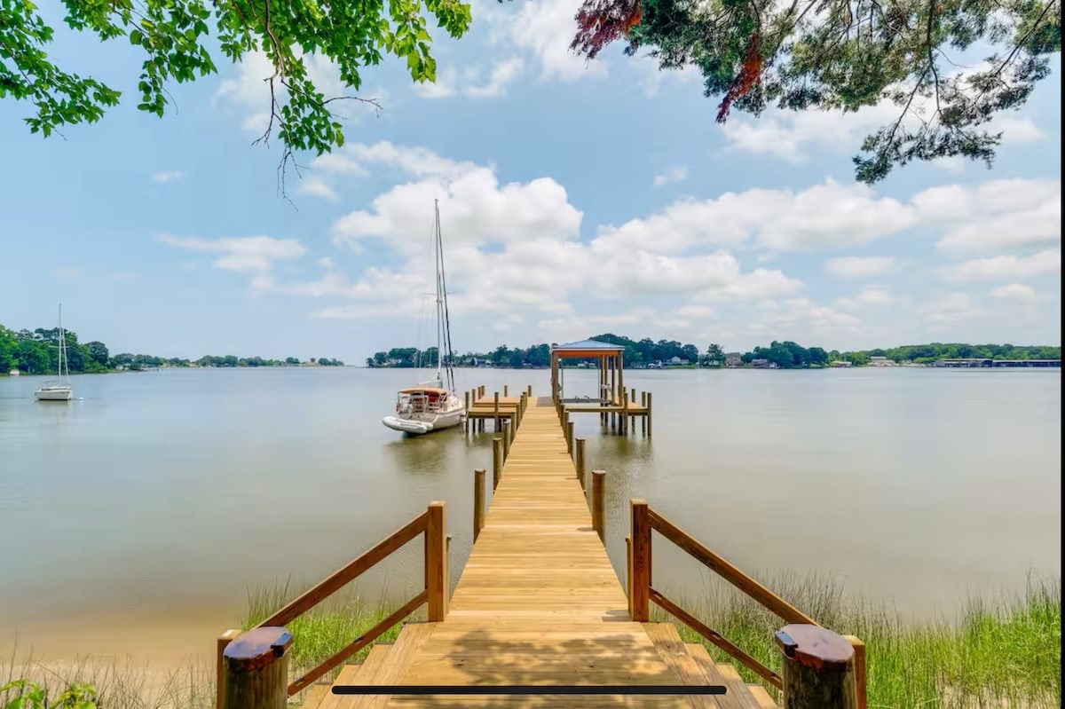 Our classic cottage has beautiful expansive views of the Potomac River. Wake up to stunning sunrises & enjoy coffee in our screened front porch, or sit & relax on our own private pier. Our home is equipped with comfortable linens, a fully stocked kitchen, Smart TV, Wi-Fi, & a secluded outdoor dining area with a gas grill, fire pit & fenced yard. We are just blocks away from the public beach, downtown shops, boardwalk, and restaurants. Golf cart rentals can be reserved thru local companies