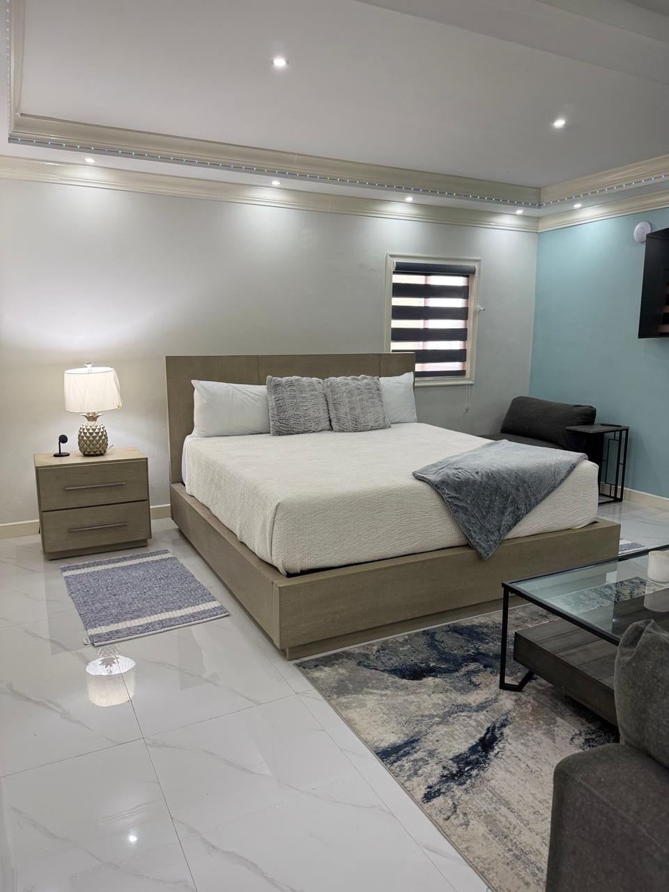 Summer on the Rock is a brand new penthouse suite in the heart of Negril. Steps away from the town itself you can easily get to local craft shops, eateries, supermarkets and fast food restaurants and live like a local, or you can get away from it all and stay in. This apartment is positioned at the crossroads between the west end (Cliffs) and the Norman Manley Boulevard ( 7 mile beach) giving you the option of lounging on the beach in the morning and jumping off the cliffs in the afternoon.