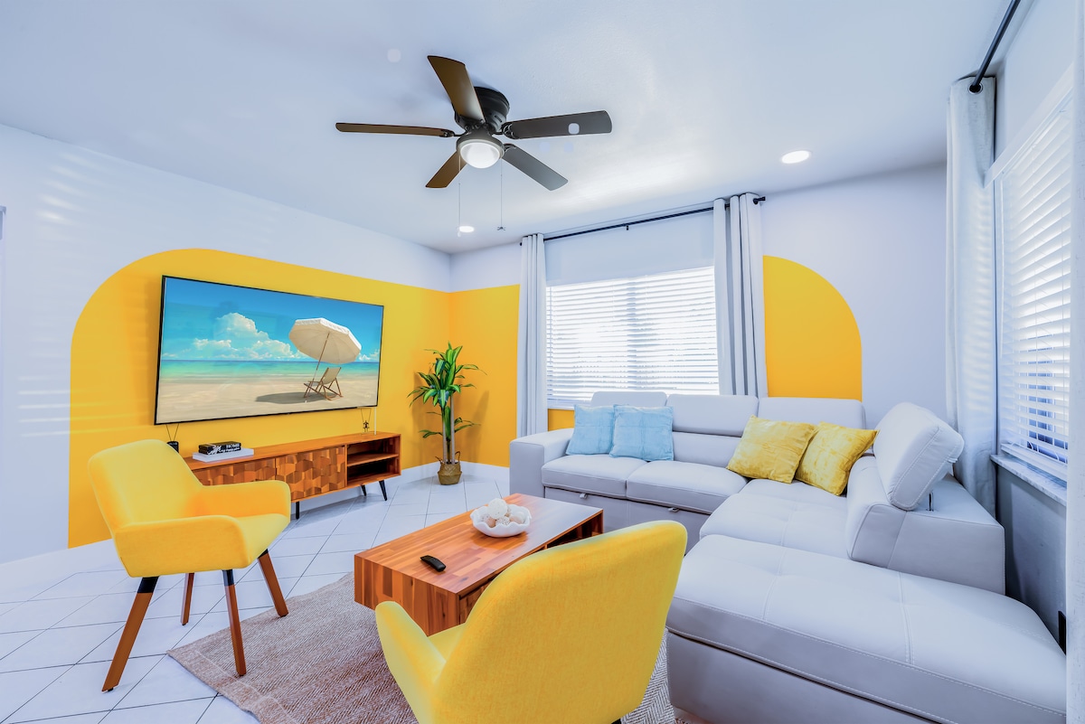 Experience a stunning villa with a five-star resort feel. This 4-bedroom, 4-bath retreat features an open-concept living area and a top-of-the-line kitchen. Enjoy the screened-in heated pool, a fenced backyard, and a spacious outdoor lounge and dining area, perfect for relaxation and entertaining. - Three of the four bedrooms boast in-suite bathrooms - Very spacious, perfect for large families! - Custom interior design. - Screened-in pool and outdoor area. - 25 minutes from the beach.