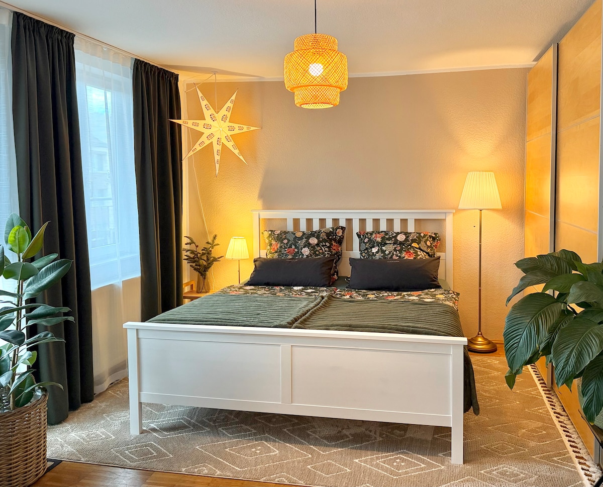 Die Wohnung ist offiziell erfasst und amtlich zur Kurzzeitvermietung freigestellt. Diese grosszügige, im Sommer 2021 grundsanierte 4.5-Zimmer Wohnung, erstreckt sich über 2 Stockwerke. Sie verfügt über einen grossen, lichtdurchfluteten Wohn-/Essbereich, 3 voll ausgestattete Schlafzimmer sowie 2 moderne Badezimmer und einen Balkon. In knapp 15 Minuten erreicht man mit den vorhandenen Fahrrädern (2x) Münsters schöne Innenstadt und bewegt sich dabei so fort wie echte Münsteraner.