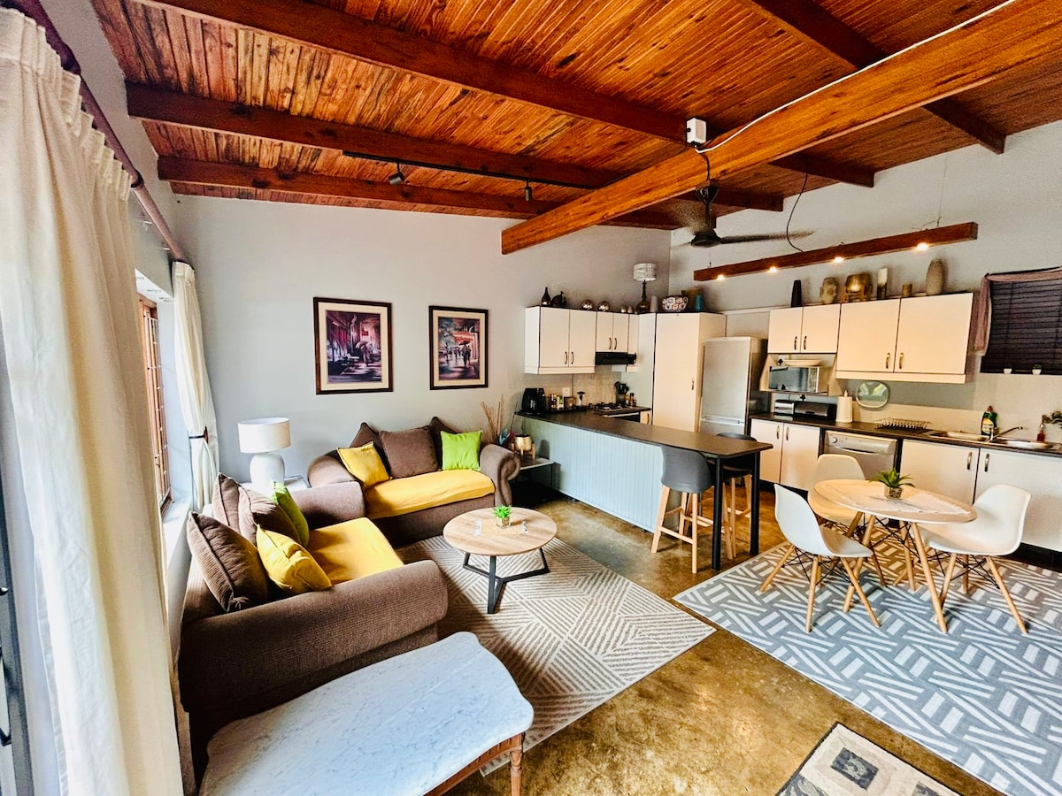Compact, eclectic and unpretentious garden cottage in a tranquil and secluded setting.......2 kilometers away from the Indian Ocean. Private, safe and centrally located within walking distance of 7 choice restaurants. Retail stores, library and Medical Center within a 1 km radius. The shower is an experience!! Please note it's a kitchenette with a microwave, fridge, kettle and a sink. Also please read the check in and checkout times. 24 km from the Airport (19 min)