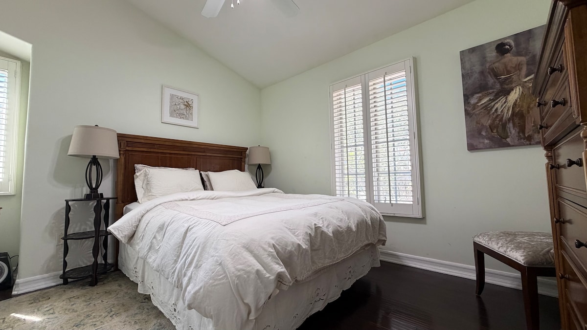 Welcome to your Los Angeles escape!** Step into this beautifully appointed room, perfectly situated in the heart of Hollywood. Experience the glamour and excitement of LA with all the comforts of home. Ideal for solo travelers, couples, and business professionals. - **Comfortable Living:** Queen-sized bed with premium linens, cozy seating area, and ample storage space. **Access to Shared Spaces:** Full access to a well-equipped kitchen, stylish living room, and charming outdoor patio.
