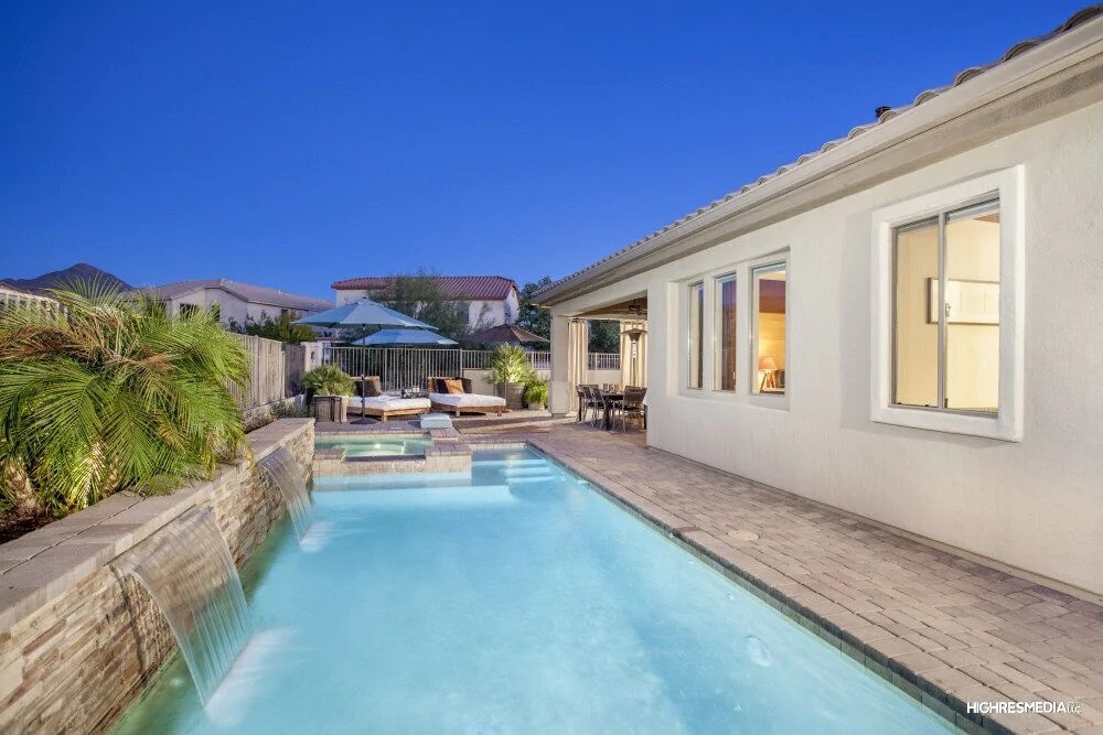 Beautiful custom home, in a quiet gated community. 3 master suites, gourmet kitchen, wood floors, granite counters, Viking appliances. The house is for guests that love to cook, eat and relax in luxury. The backyard is excellent for grilling, entertaining and relaxing in the pool and spa. The pool heating is optional for extra fee. Excellent location close to shopping, dining, golf and hiking. STRICT NO PARTY or LOUD NOISE property. City of Scottsdale Short-Term Rental License #2041578