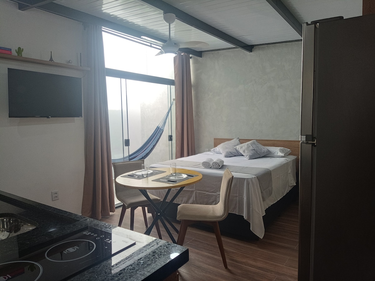 Viva uma experiência de conforto e praticidade! Preparamos um apê moderno, mobiliado com muito carinho para sua estadia. Você vai se sentir em casa! Ambiente aconchegante com: Cozinha completa, varanda ensolarada, cama de casal com closet, Smart TV, Wi-Fi, ar-condic e roupas de cama/banho novinhas e macias! E mais: além de um studio charmoso e lazer no condomínio, você estará em uma localização privilegiada,perto do Bosque dos Jequitibás, Av. Norte-Sul e Cambuí, com ótimos restaurantes e cafés.