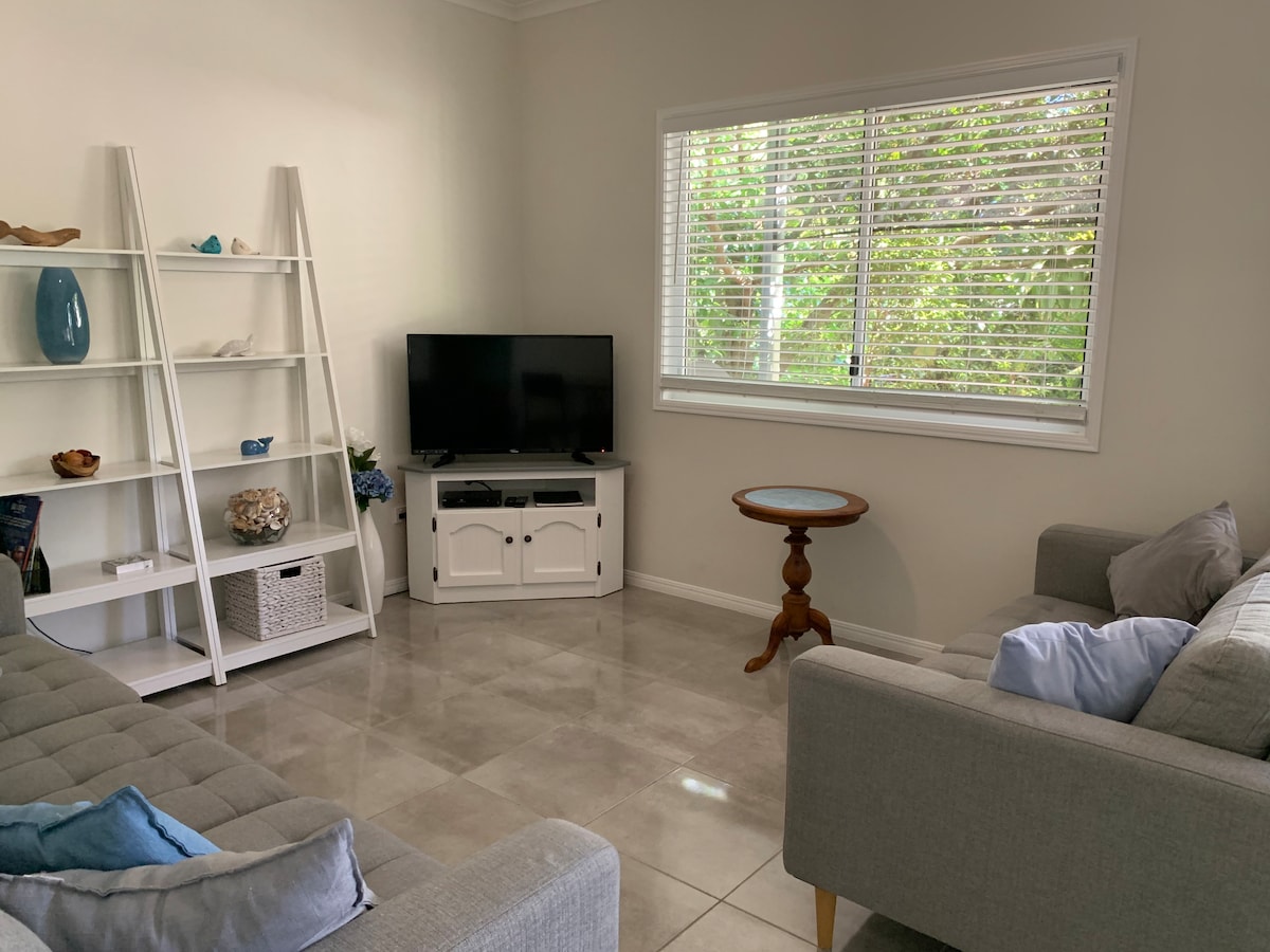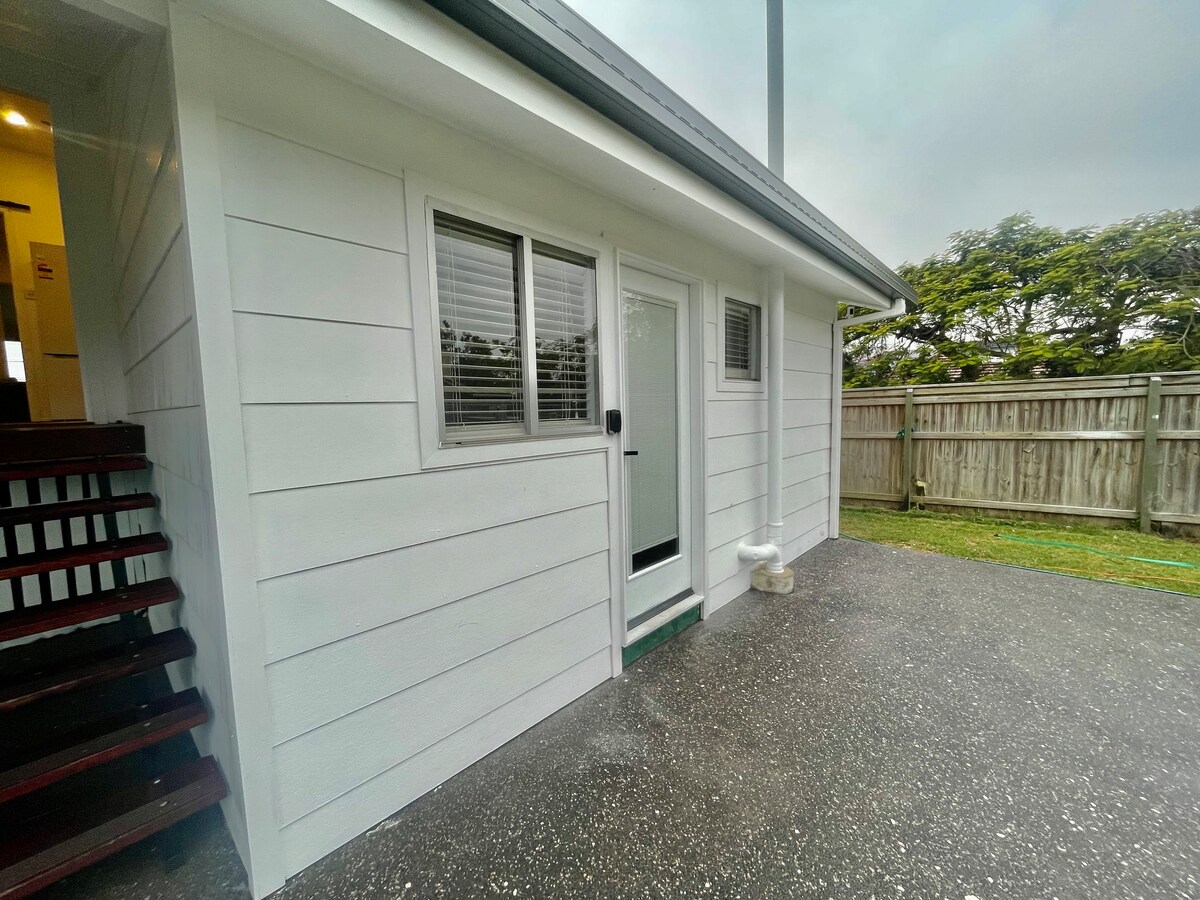 Welcome to our lovely, fully self-contained studio apartment — your own tropical sanctuary. Fresh and clean, the studio has everything you need for a comfortable and relaxing stay. The studio is located in the backyard of our home, converted to host guests. You’ll enjoy a private entrance and your own peaceful space, separate from the main house. Step outside to a tranquil deck, perfect for enjoying a cuppa or an evening glass of wine. 🚭 Please note: This is a non-smoking property.