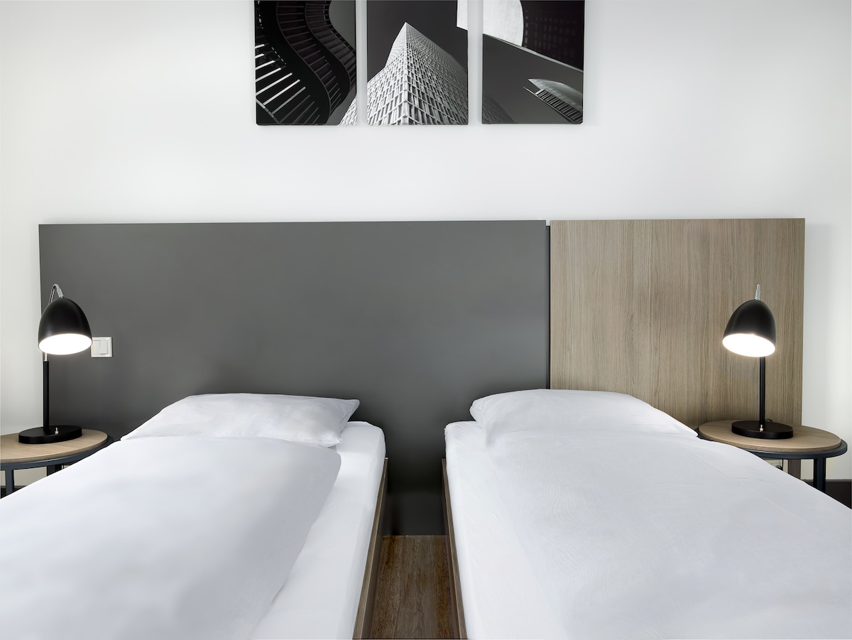 Welcome to your urban retreat! Our Superior Room offers modern comfort with sleek design touches. Relax in a cozy atmosphere after a busy day exploring Frankfurt. Equipped with all essentials (air condition, espresso machine, rain shower!) for a comfortable stay, it's perfect for solo travelers or couples.