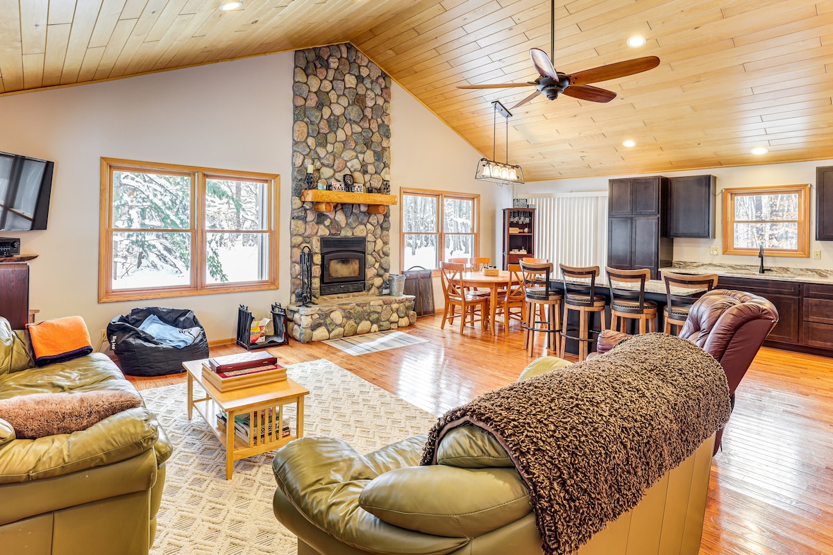 Calling all nature lovers! Experience the magic of all 4 seasons at this lakefront cabin situated on crystal clear "all-sports" Lake Meauwataka (10 mi N of Cadillac)! Open & spacious, this family friendly cabin is ideal for a multi-family get away. Unplug & relax amongst the majestic serene White Pines of the Manistee National Forest. An ALL SEASON destination for outdoor enthusiasts. Skiing, snowmobiling, snowshoeing, swimming, fishing, hunting, boating, scavenger hunts & more await!