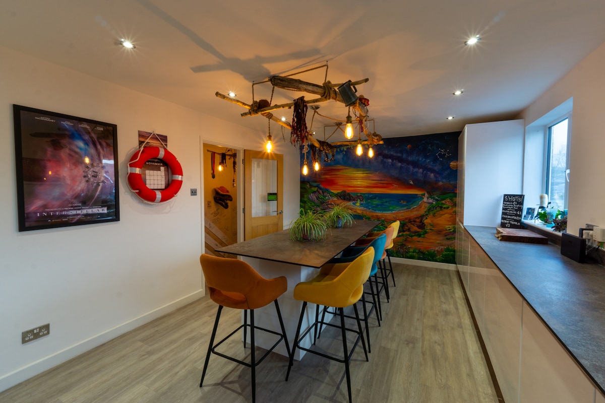 Group Gatherings Host your own event Exclusive use 10-16 guests Min 2 off peak Jacuzzi All year Outdoor Pool (heated in summer; cold in winter!) Sun Deck Garden Kitchen/Bar Games room: Music/Karaoke system Wood burner TV Communal eating space, shower/wc Escape Room Somerset Evening -pulled pork cider tasting welly wanging Large peaceful grounds BBQ Fire Pit Annexe (sole use) kitchen lounge bathroom 2 bedrooms 2 sofa beds House (part use): 4 bedrooms 3 bathrooms Glamping Trailer