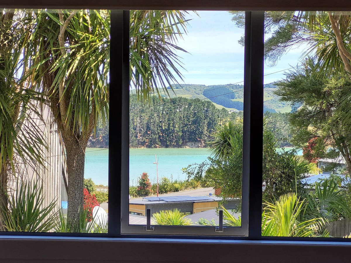 Relax at a unique and tranquil getaway, cosy, romantic and immersed in nature. An open plan studio nestled next to a gentle stream on the native forested foothills of Whale bay, Raglan. An easy 6 min walk to the surf at Whale bay, Indicators or Outside Indicators a few mins drive to Manu bay or Ngarunui beach. Warm and cosy with a beautiful open fire, modern insulation & large double glazed sliding doors. The heat pump heats the studio within 15mins.