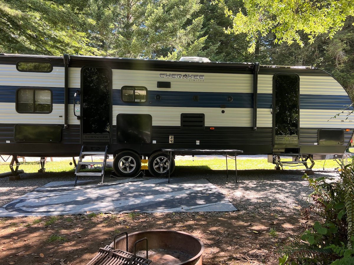 Our cozy guest house behind our family's home features a charming modern farmhouse style, comfy bedding (sleeps up to 4), a well-stocked kitchenette, and level 1 charger for our EV guests. Located close to Brookings restaurants/shops, a short drive to stunning beaches, trails, the Chetco River, redwood groves, and a short walk to Azalea Park (featuring 2 playgrounds, lovely gardens/trails, disc golf course, ballfields/courts, free concerts in the summer and popular lights show in the winter.)